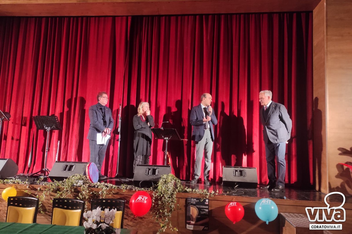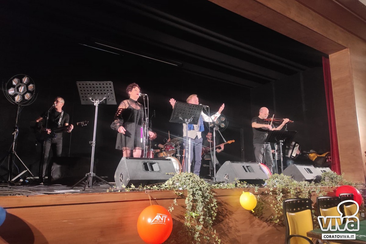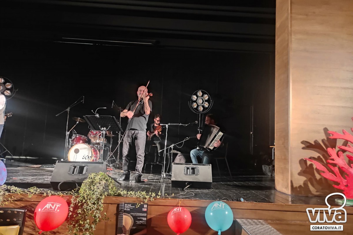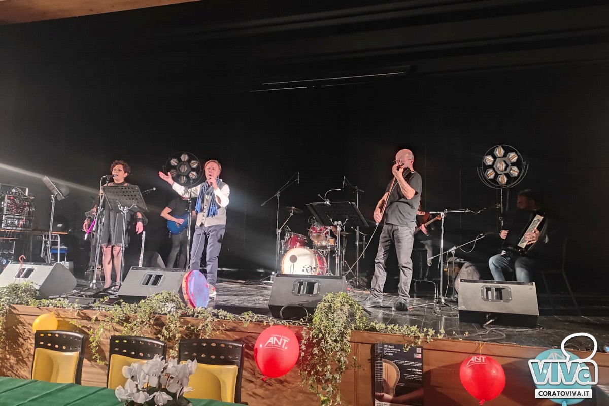 Il gruppo musicale ha accompagnato la serata con le sue note e le sue melodie, dai grandi classici a composizioni musicali nate dalla penna di Gerardo Strippoli e di Mimmo Mazzilli. I musicisti sul palco hanno intrattenuto un auditorium gremito, attraverso ritmi e testi di poesia vernacolare, creando un legame ancor più profondo tra arte e comunità.«Ci tenevamo a festeggiare questi 25 anni», ha affermato Domenico Resta, delegato ANT Corato. «Da quando la Fondazione ANT è approdata a Corato abbiamo avuto delle difficoltà, ma anche tanti successi. La gente ci ha accolto e ci siamo radicalizzati, ci sostiene e consente ancora la nostra presenza. Come è noto, ci occupiamo dell'assistenza a domicilio dei malati di tumore in fase avanzata e questo riempie un vuoto che il servizio sanitario nazionale non è in grado ancora di fornire interamente».