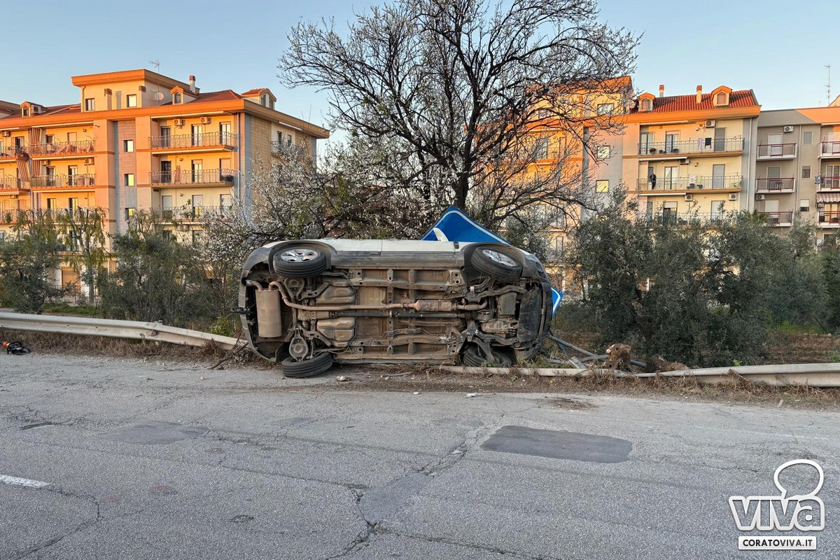 Ancora un incidente a Corato: auto ribaltata contro il guard rail