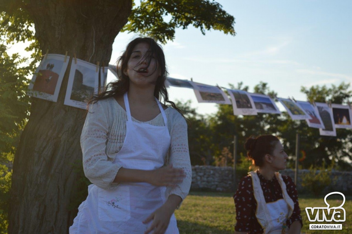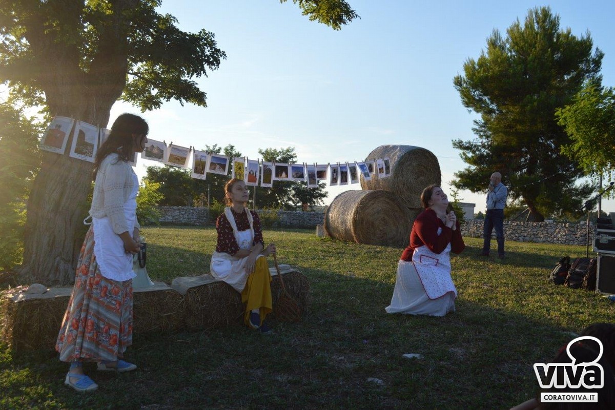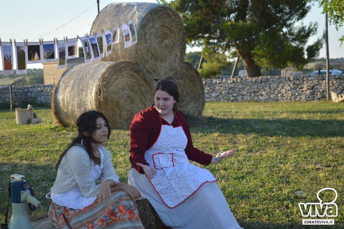 Le favole murgiane raccontate dalle bravissime Carmen Centrone, Beatrice Gallo e Lorena Farucci hanno aperto la serata, in uno spassoso compendio di tradizione, modi di dire e racconti d'altri tempi, ma pregni di attualità. Un quadretto familiare in cui la figura paterna è assente, o quando c'è è sempre annebbiata dall'alcol, nel quale la madre è di fatto l'unica educatrice delle due figlie, l'una volenterosa e lavoratrice, l'altra scansafatiche ma scaltra. Educazione impartita con saggezza e battipanni, impugnato dalla madre come scettro del potere.