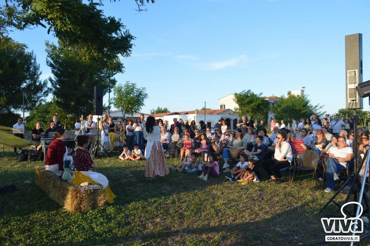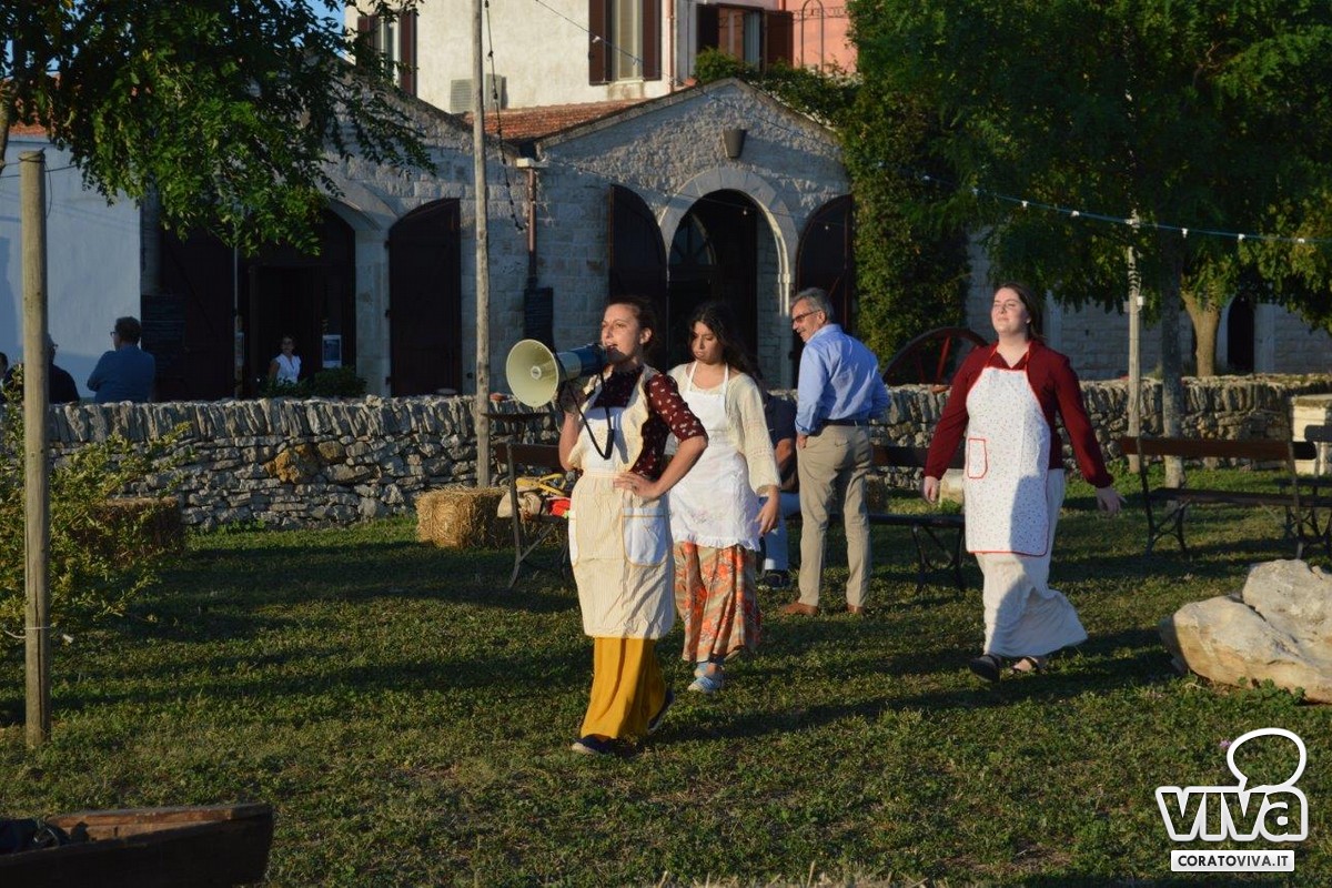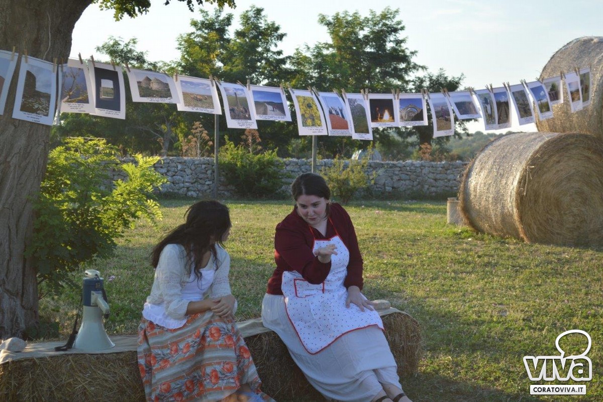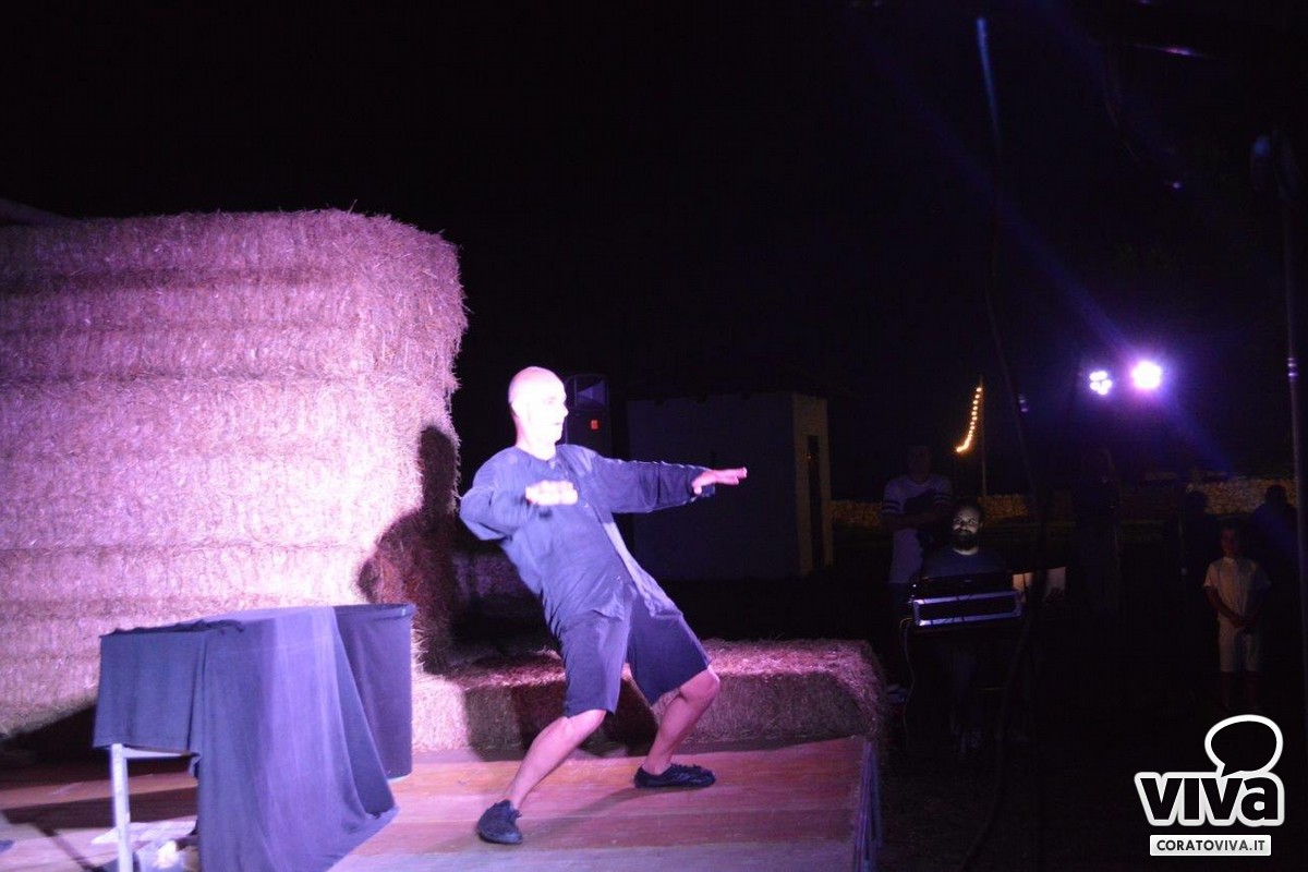 Le favole murgiane raccontate dalle bravissime Carmen Centrone, Beatrice Gallo e Lorena Farucci hanno aperto la serata, in uno spassoso compendio di tradizione, modi di dire e racconti d'altri tempi, ma pregni di attualità. Un quadretto familiare in cui la figura paterna è assente, o quando c'è è sempre annebbiata dall'alcol, nel quale la madre è di fatto l'unica educatrice delle due figlie, l'una volenterosa e lavoratrice, l'altra scansafatiche ma scaltra. Educazione impartita con saggezza e battipanni, impugnato dalla madre come scettro del potere.