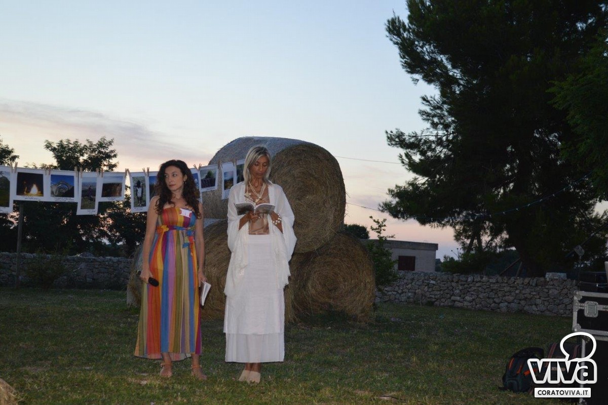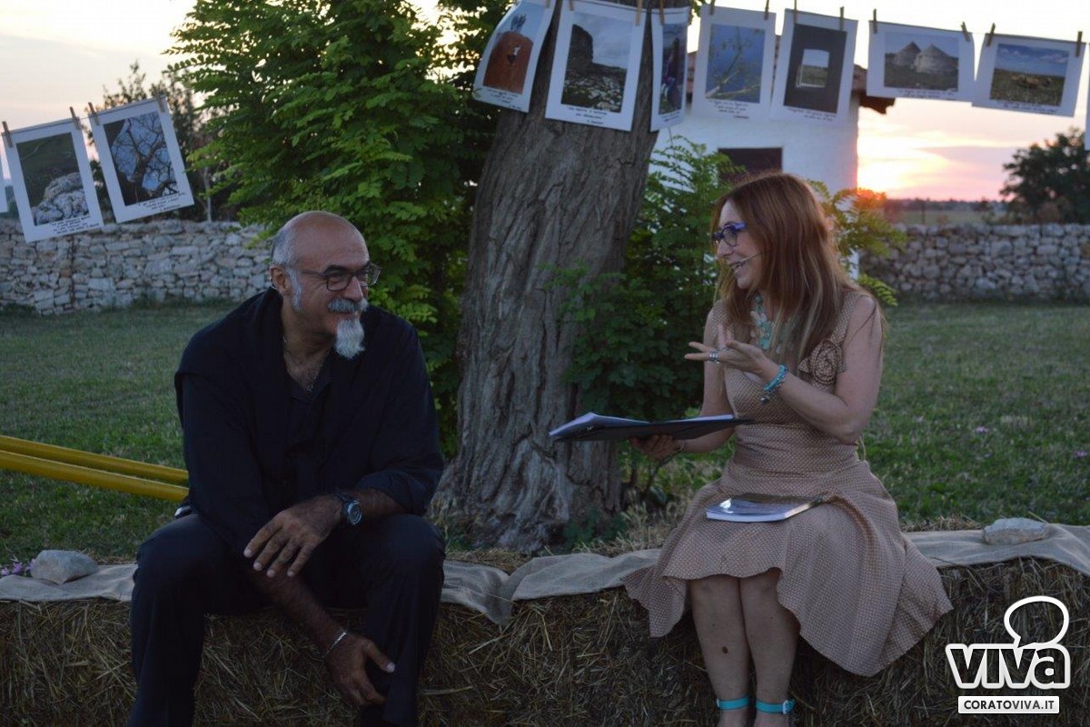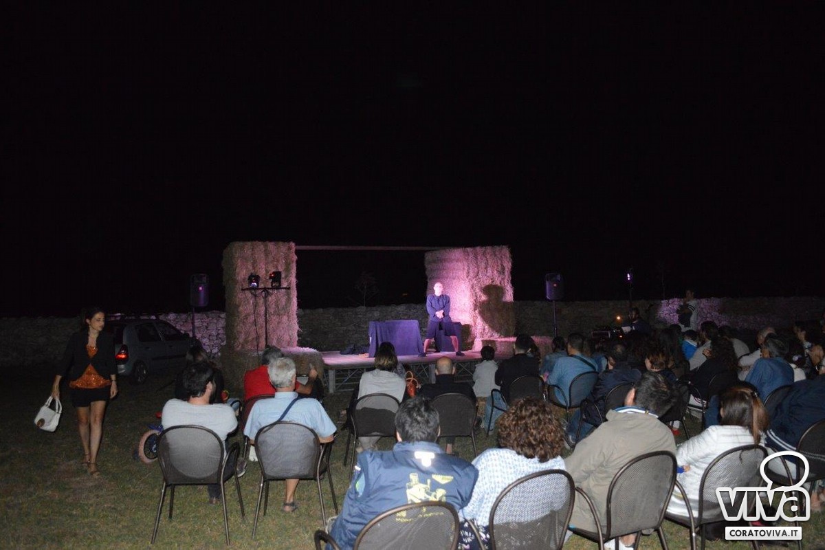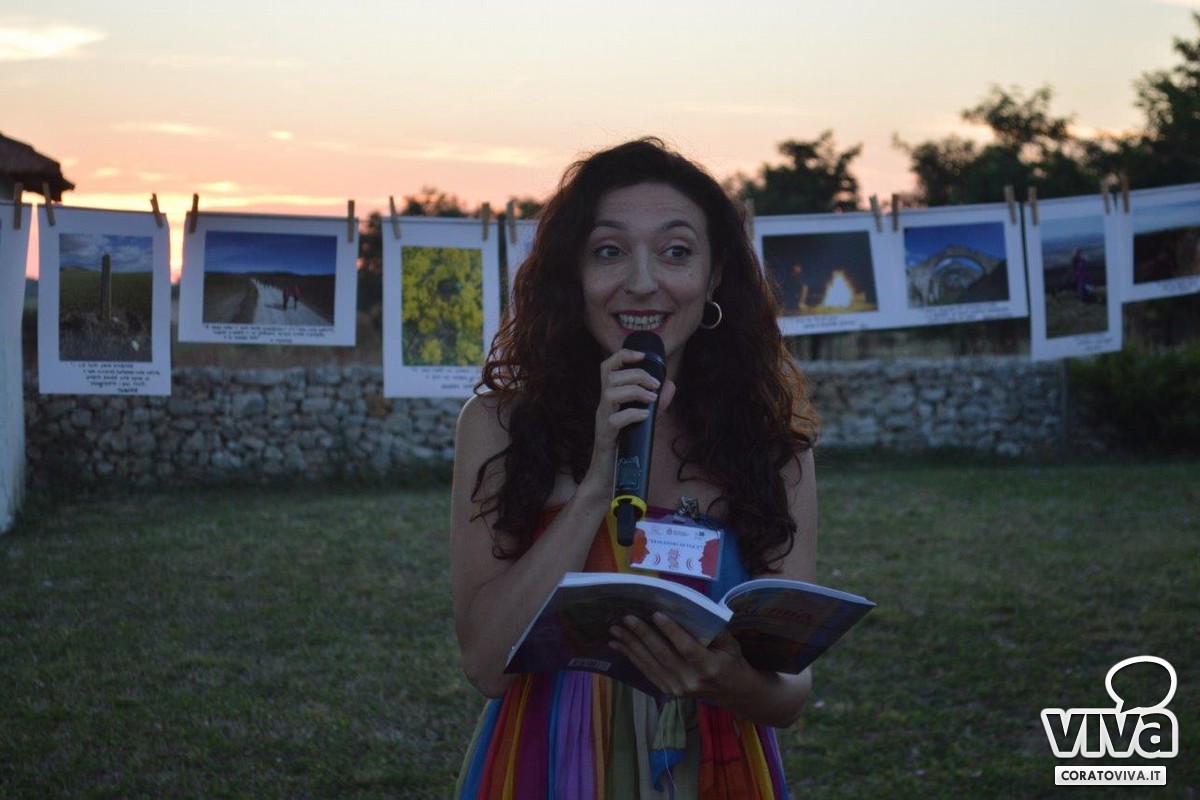 Al momento spensierato e divertente, è seguito quello della commozione e del ricordo di Angela Pisicchio, scomparsa prematuramente meno di un mese fa che, nell'ambito di Art_Estate ha curato in ogni minimo dettaglio lo spazio del Presidio del Libro di Corato. Idea di Angela Pisicchio, in particolare, la figura del "Donatore di voce", una persona preposta alla lettura ad alta voce di brani e poesie. Proprio due donatrici di voce d'eccezione, l'attrice Claudia Lerro e la Prof. Monica Tommasicchio hanno letto alcuni passi tratti da "Facce da Murgia", scritto da Corrado Palumbo. L'autore, esperto e rinomato escursionista, in una piacevole chiacchierata con la moderatrice Mariella Sivo ha parlato del suo libro, una serie di incontri, reali e immaginari, con personaggi che amano o hanno amato la Murgia, da Ciccillo (uomo di Altamura) a Federico II.