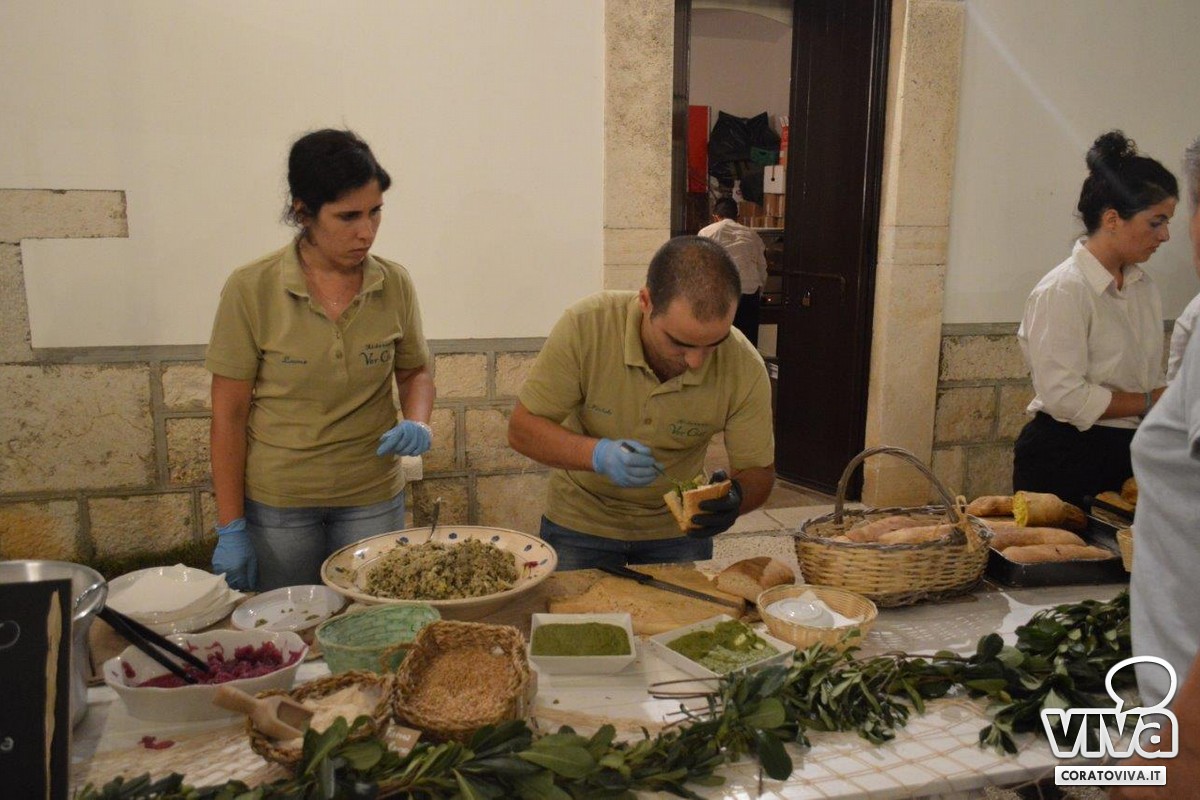 Le Murge sono anche gastronomia. In una serata murgiana dunque non poteva mancare il buon cibo, il cui gusto è stato sapientemente esaltato dagli chef de "La Bottega dell'allegria" e "Ristorante Ver Chef". Centinaia di persone appagate da quanto sin ora visto (e sentito) ma richiamate dai sapori hanno popolato gli stand e hanno proseguito la cena adagiati sulle balle di fieno, in un'immersione totale con la natura circostante.