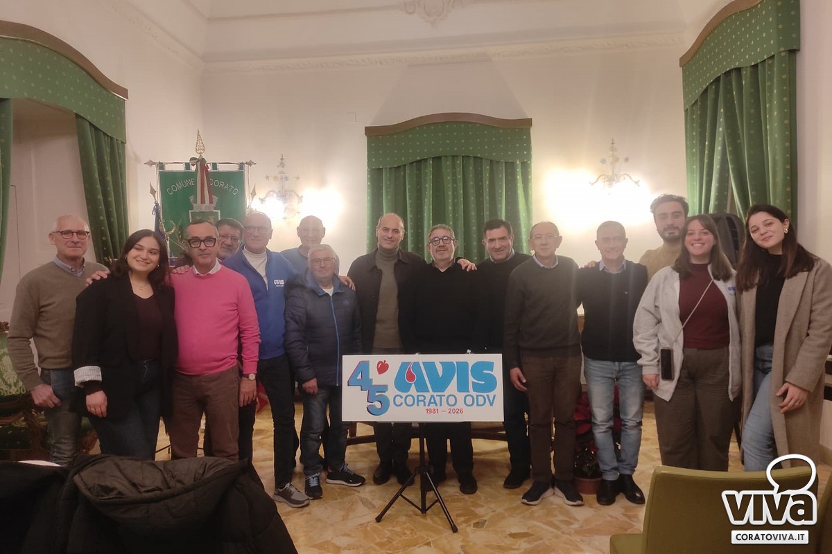 Dal 1981 l'Avis mantiene un impegno civile, di solidarietà e crescita costante che l'hanno resa punto di riferimento per la città. Inoltre, da anni l'Avis collabora con i centri trasfusionali di Bari, Molfetta e Andria.«Avis celebra con orgoglio il passato, vive con responsabilità il presente e guarda con fiducia al futuro, consapevole che la cultura del dono è un patrimonio che cresce solo se condivisa», ha affermato con orgoglio il presidente Lotito. «Il nostro anniversario non è un punto d'arrivo, ma una nuova partenza, un impegno rinnovato a formare coscienze, a valorizzare i giovani, a custodire la salute e a continuare a donare vita. Accanto alla programmazione di eventi divulgativi, di sensibilizzazione e promozione del dono, l'anniversario dovrà essere un momento di festa e di condivisione. Sono previsti appuntamenti celebrativi e di intrattenimento aperti a soci e non soci, pensati come occasioni per rinsaldare i legami di comunità e rendere tutti partecipi della storia e dei valori che da 45 anni Avis Corato si prefigge».
