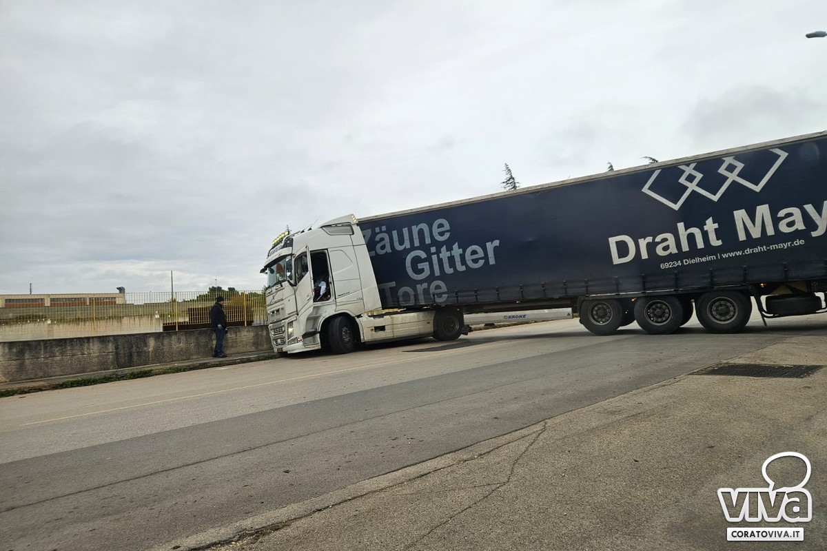 Un camion è rimasto bloccato di traverso questa mattina su via Castel del Monte durante una manovra, paralizzando temporaneamente la circolazione. Secondo le prime ricostruzioni, l'autista avrebbe tentato di completare la manovra in un punto troppo stretto per i mezzi pesanti, finendo per danneggiare parte del frontale del mezzo e occupare completamente entrambe le corsie.