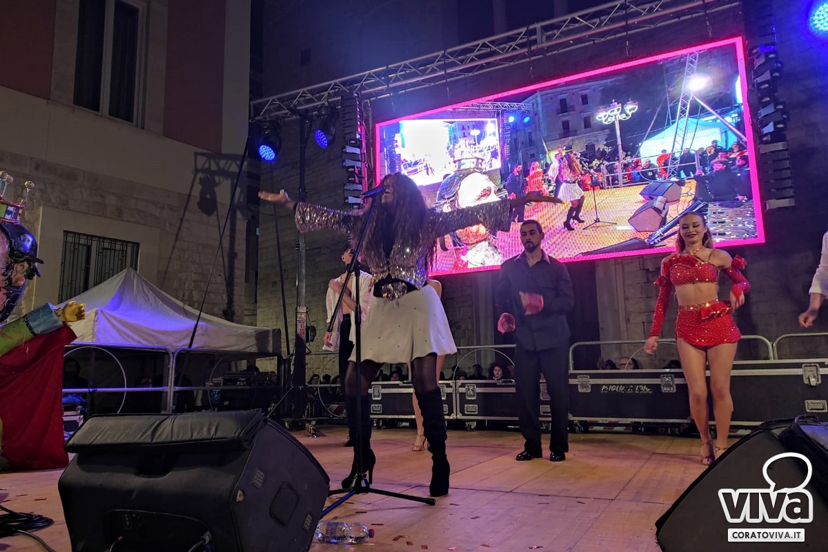 La 46ª edizione del Carnevale Coratino si è conclusa con un concerto che ha trasformato la città in una vera e propria dancefloor a cielo aperto: ieri 22 febbraio, Cecilia Gayle, la "regina dei ritmi latini", ha incantato Piazza Cesare Battisti.