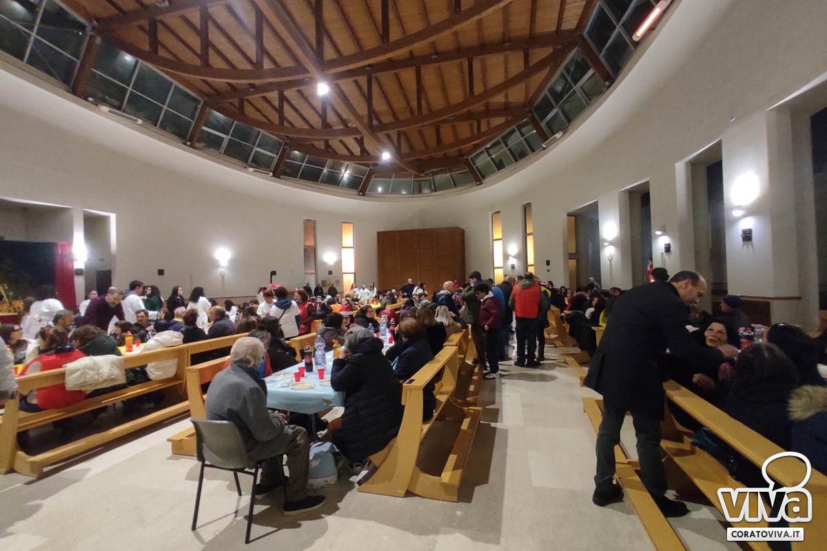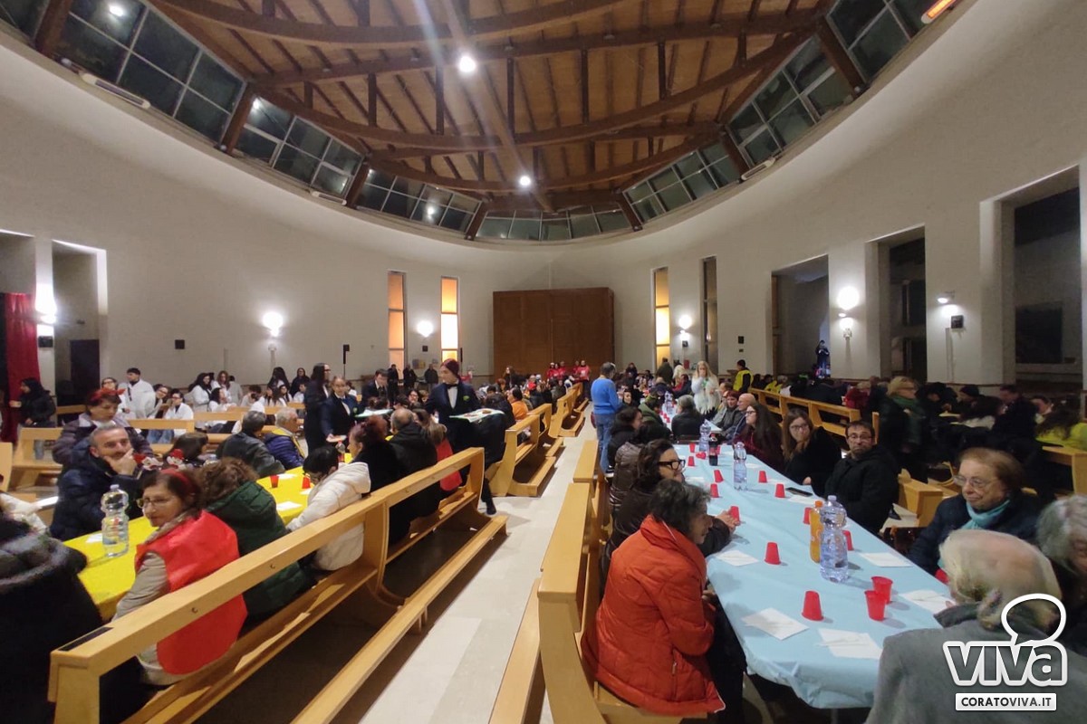 Lunghe tavolate hanno occupato la Chiesa del Sacro Cuore che si è trasformata in una grande casa aperta a tutti. Più di duecento presenti hanno condiviso risate, racconti, musica e cibo, preparato dall'Istituto professionale "L. Tandoi". Non solo, professori, studenti e dirigente si sono impegnati anche per l'allestimento degli spazi e il servizio in sala.