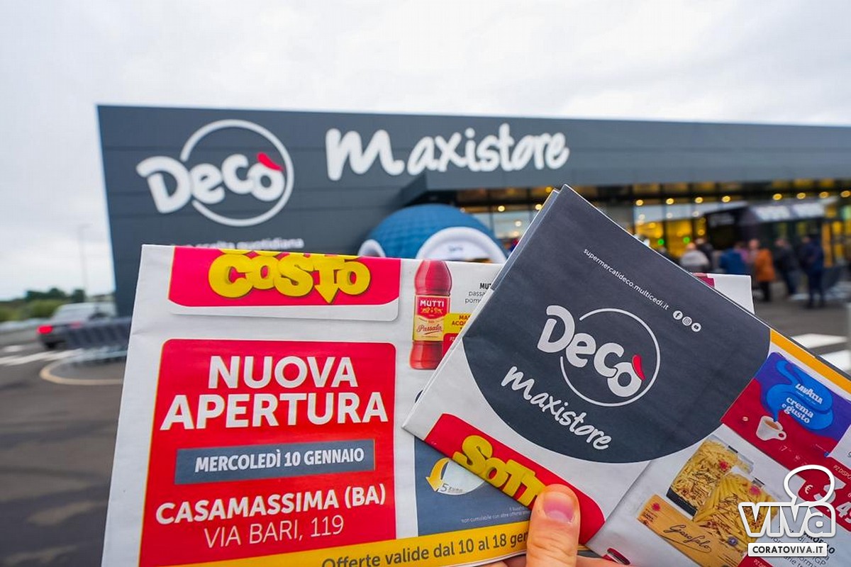 Il nuovo Maxistore Decò sarà aperto tutti i giorni, dal lunedì al sabato dalla 8:00 alle 21:00 e la domenica dalle 8:30 alle 13:30, offrendo quotidianamente prezzi competitivi, servizi personalizzati e un assortimento, ampio e completo, di prodotti freschissimi e di prodotti confezionati di marca e a marchio Decò e Gastronauta.