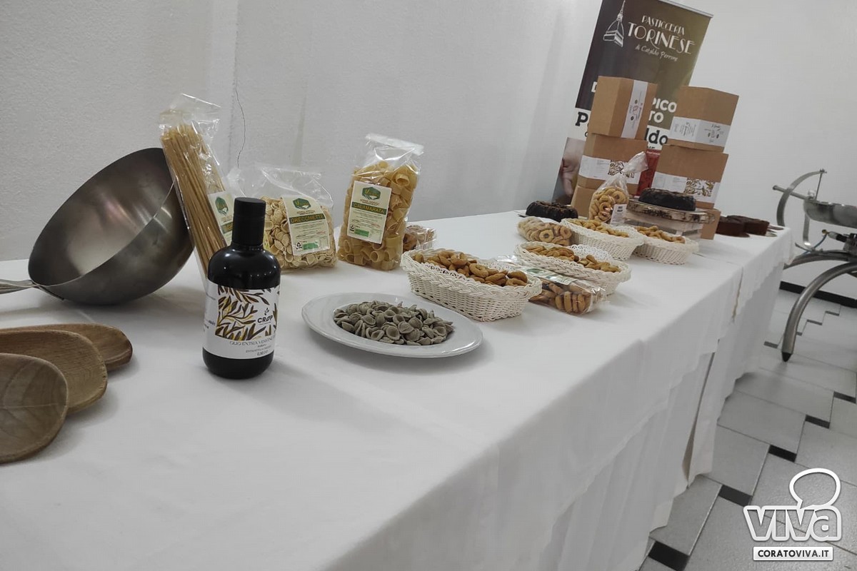 A fine conferenza, una degustazione per valorizzare il paniere agroalimentare del territorio: pasta, cece nero, lenticchie, cicerchie, dolci come il "Gattolio" della "Pasticceria Gattulli" e il "Pancataldo" della "Pasticceria Torinese".
