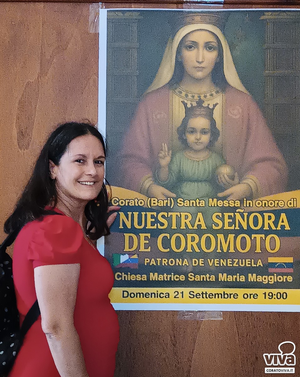 Per celebrare i 373 anni della apparizione e i 73 anni della sua incoronazione canonica della Madonna di Coromoto, patrona del Venezuela, domenica 21 settembre, alle ore 19, verrà celebrata una messa in Chiesa Matrice SS Maria Maggiore. L'iniziativa è dell'attivista Pino Gabriele con la moglie Rosa Angela Zaza, entrambi devoti alla Madonna di Coromoto, assieme ad un gruppo di italovenezuelani residenti sul territorio pugliese.