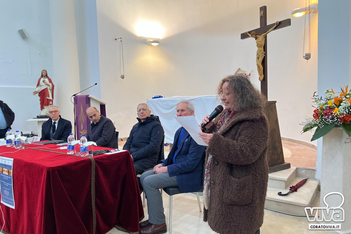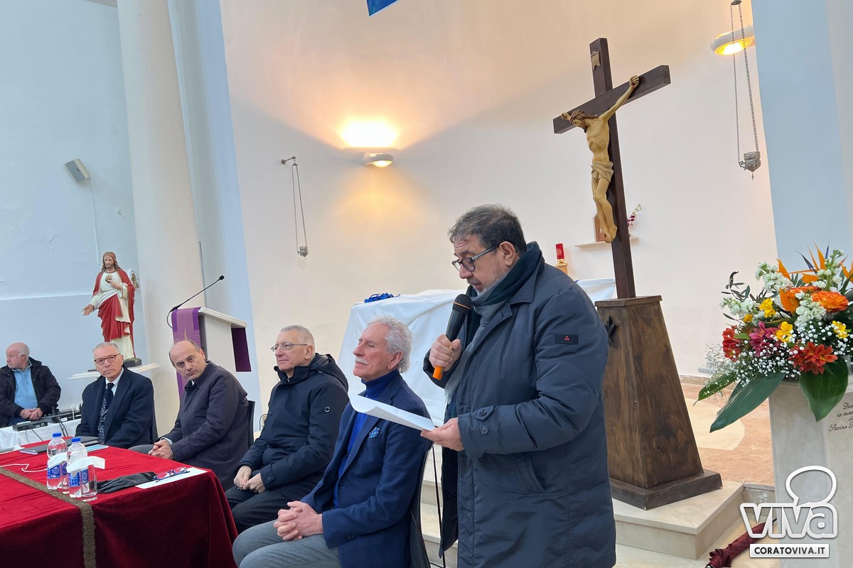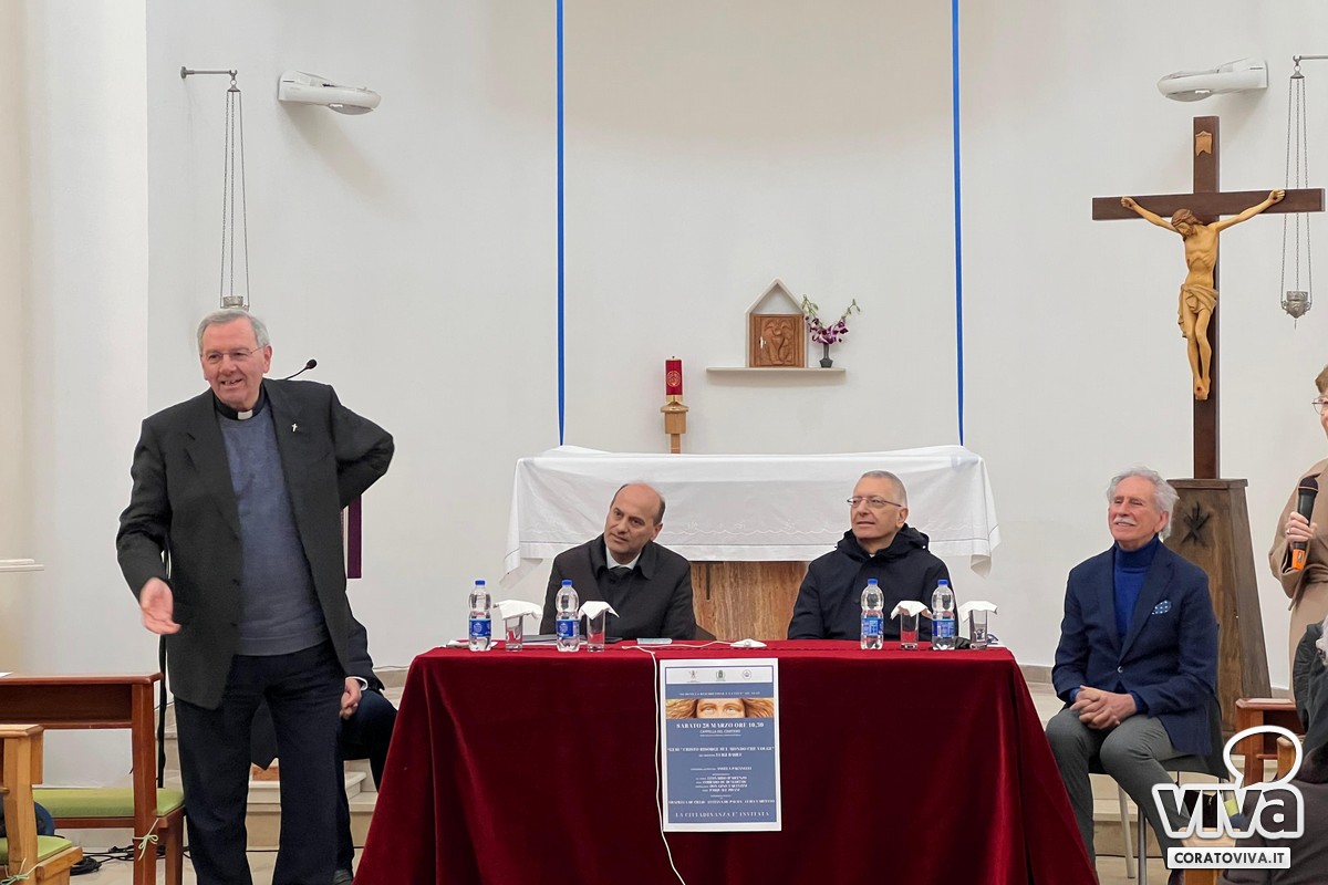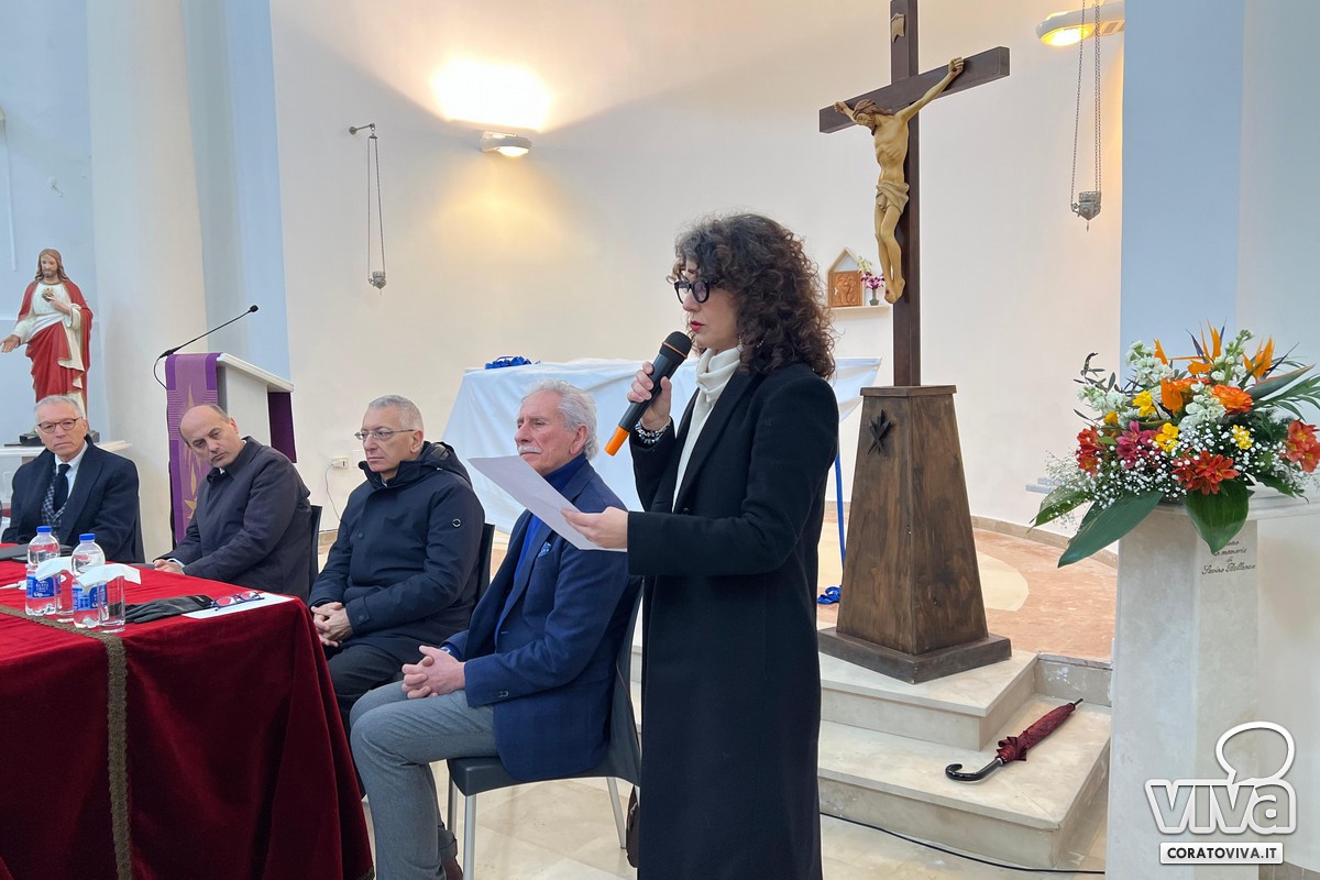 Lo svelamento dell'opera è avvenuto oggi 28 marzo, nella Cappella del Cimitero, alla presenza di S. E. Mons. Leonardo D'Ascenzo, Arcivescovo di Trani – Barletta – Bisceglie, del Sindaco di Corato, Prof. Corrado De Benedittis, da don Gino Tarantini, Cappellano del Cimitero e dal Prof. Pasquale Pisani.