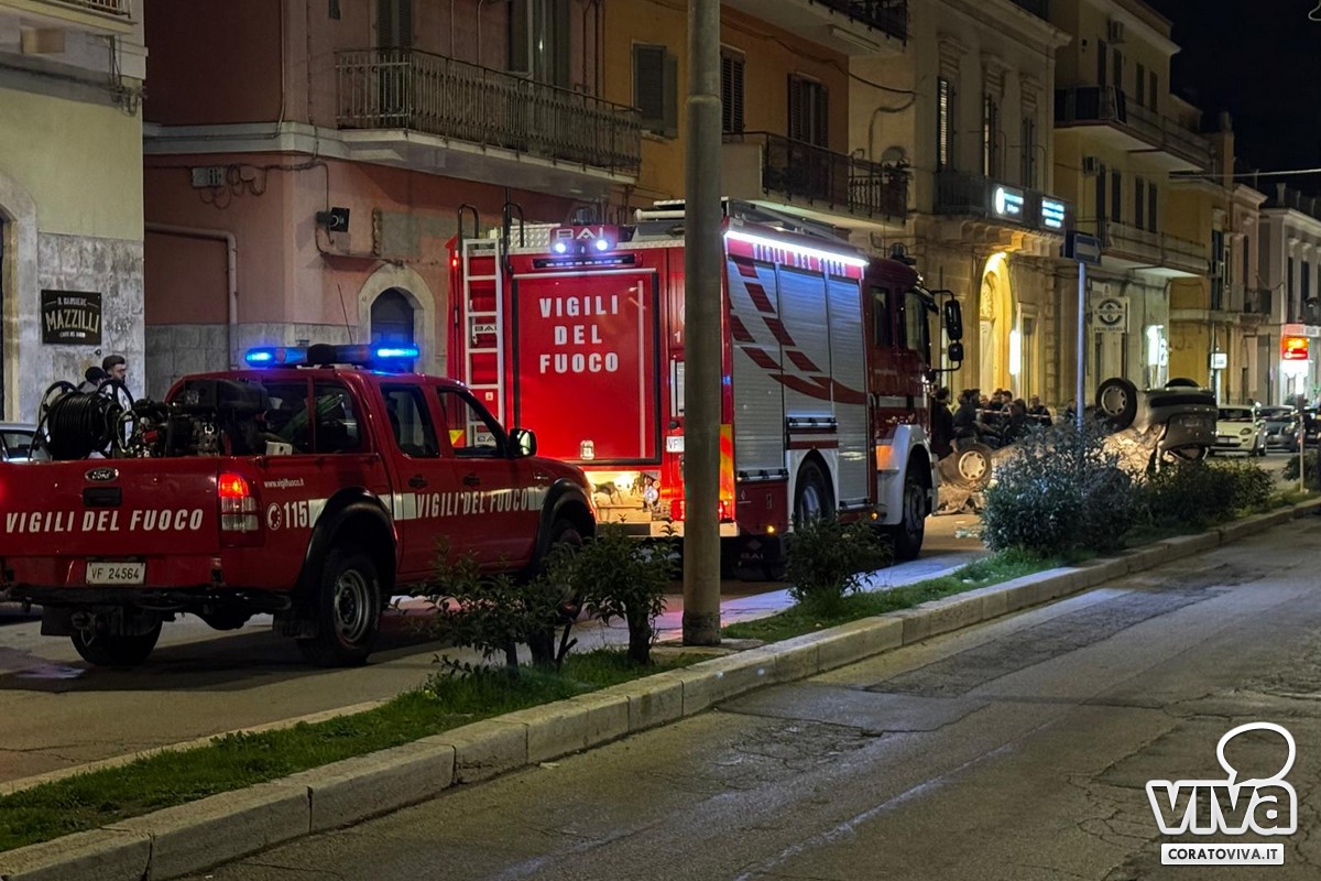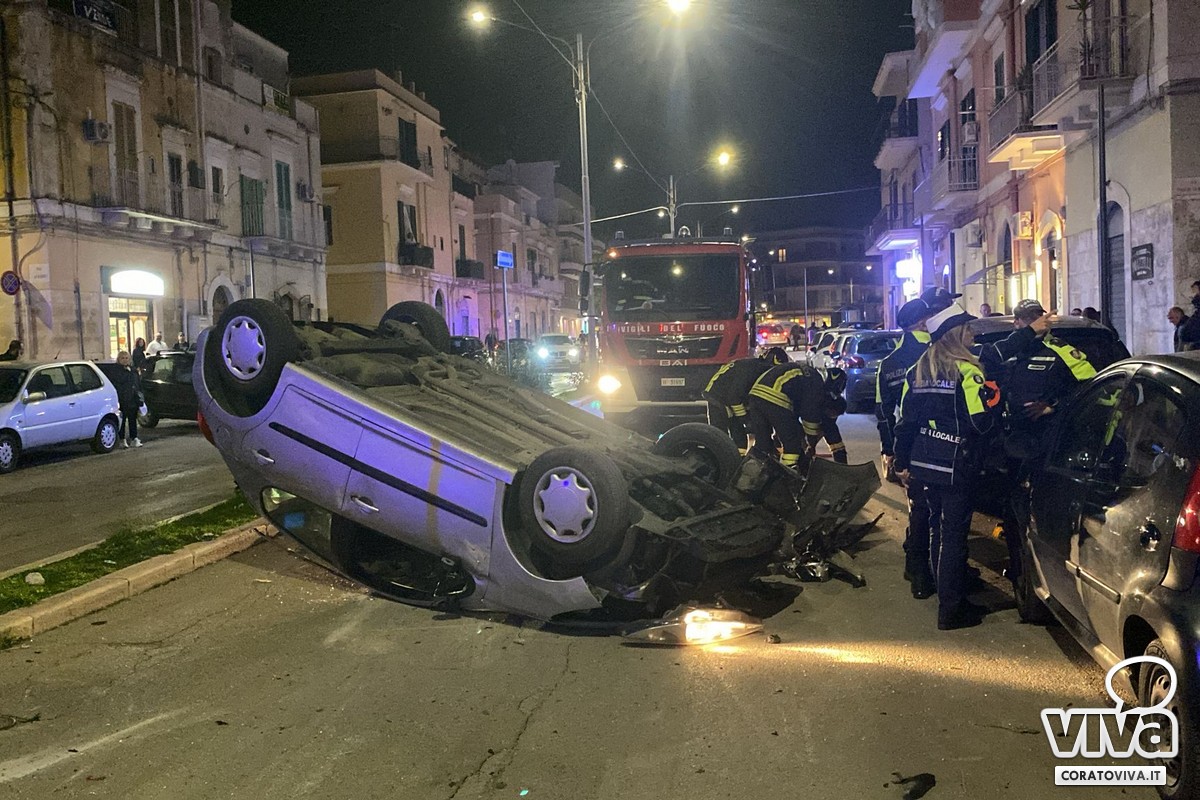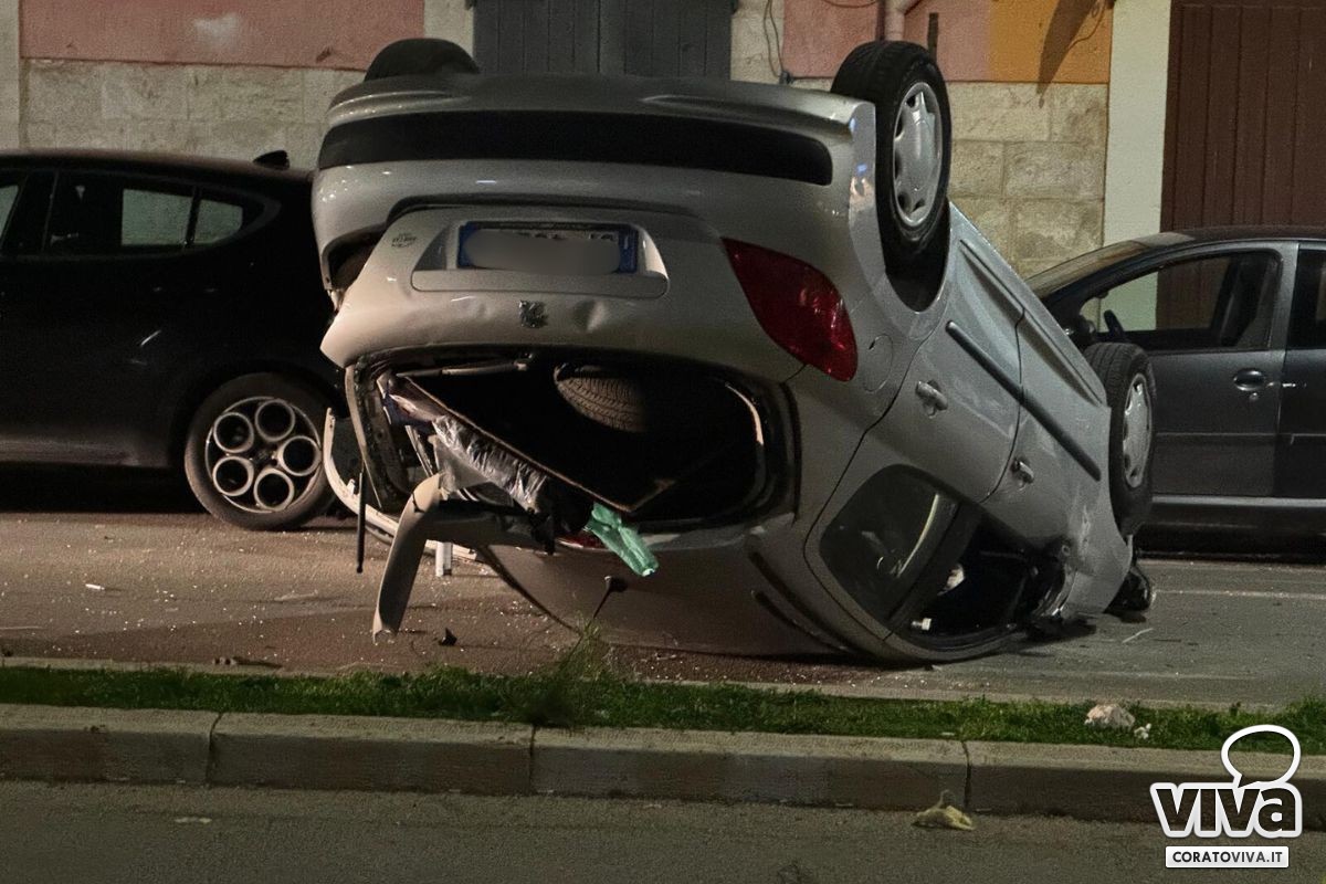 Incidente a Corato: auto si ribalta su viale IV Novembre