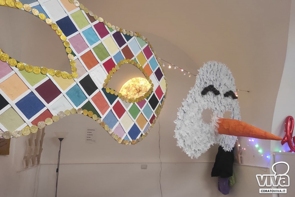 Quattro mascheroni realizzati interamente con materiale di riciclo rappresentano un affascinante incontro tra passato e presente: è il laboratorio svolto per il Carnevale Coratino dal centro "Ermes", nell'ambito di "Innesti-Anziani".