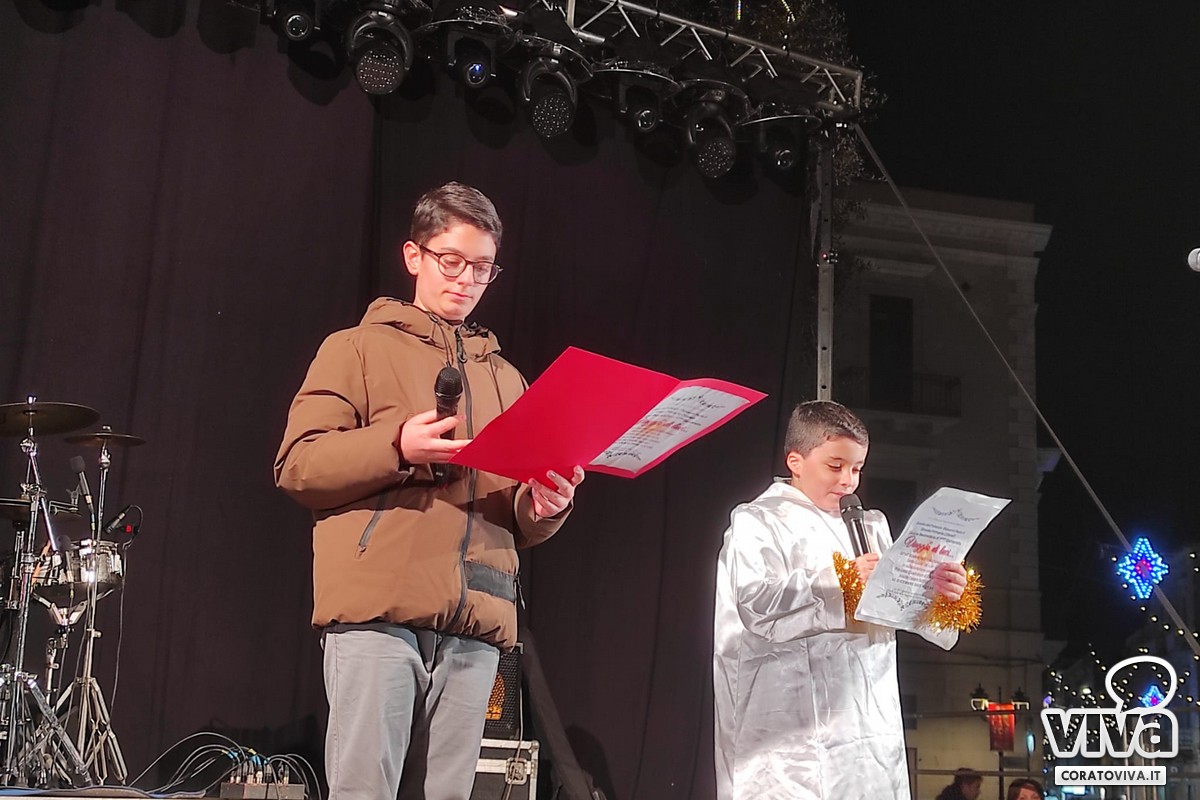 La serata si è aperta con le esibizioni degli alunni dell'Istituto Comprensivo "Cifarelli-Santarella-Battisti" per un vero e proprio "Viaggio di Luci". Momenti di danza, canto e recitazione che hanno commosso e divertito i presenti e i tanti passanti.