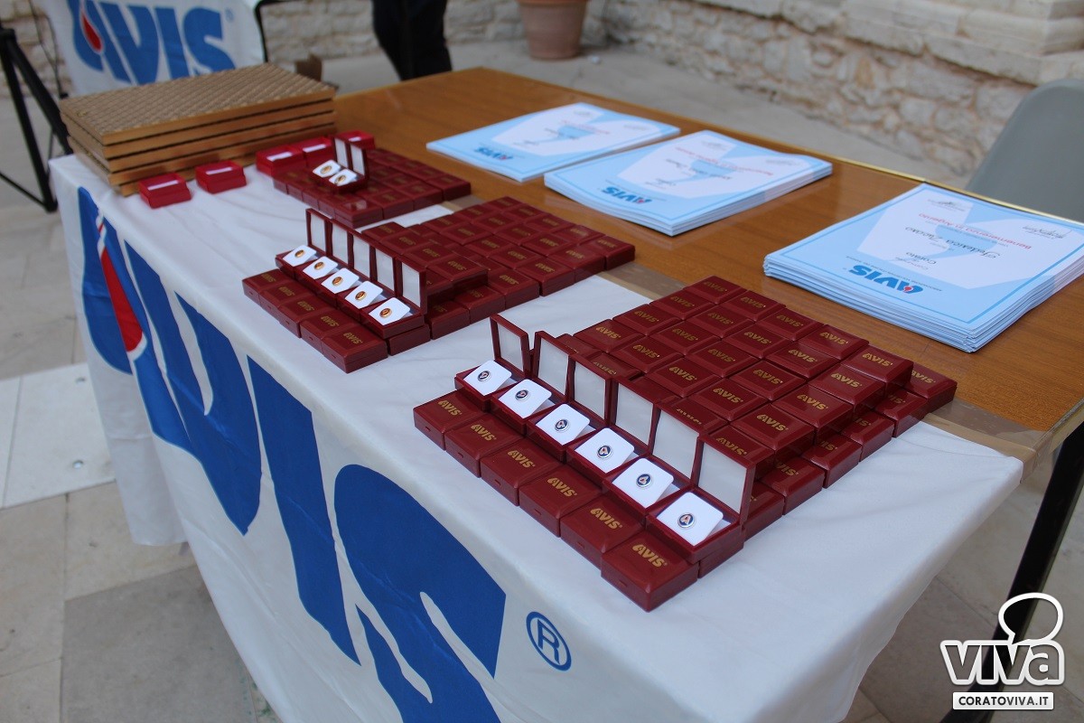 Domenica 16 ottobre, nel chiostro comunale di Corato, si è svolta la cerimonia di consegna delle benemerenze riservate a donatrici e donatori della sezione cittadina dell'Avis, l'associazione volontari italiani del sangue, che nel corso del 2021 hanno maturato un consistente numero di donazioni di sangue e plasma, contribuendo in modo sostanziale alle necessità dei centri trasfusionali e alla vita dell'associazione.