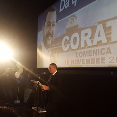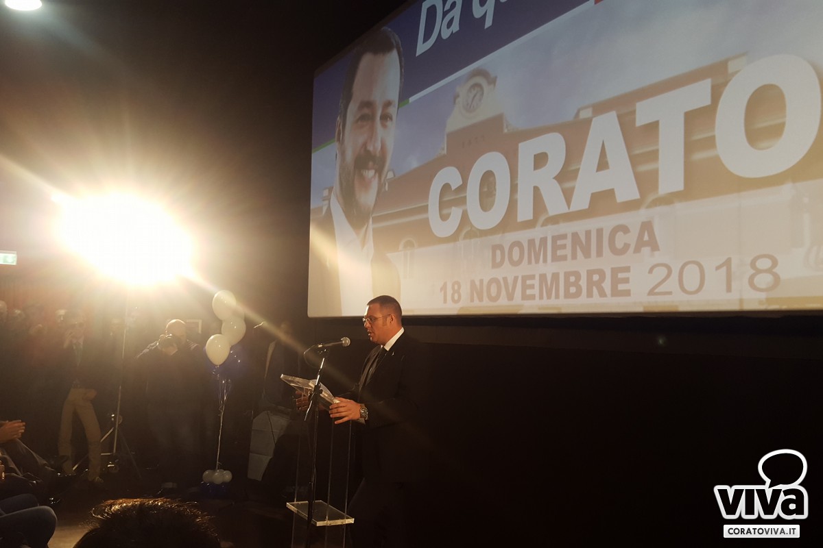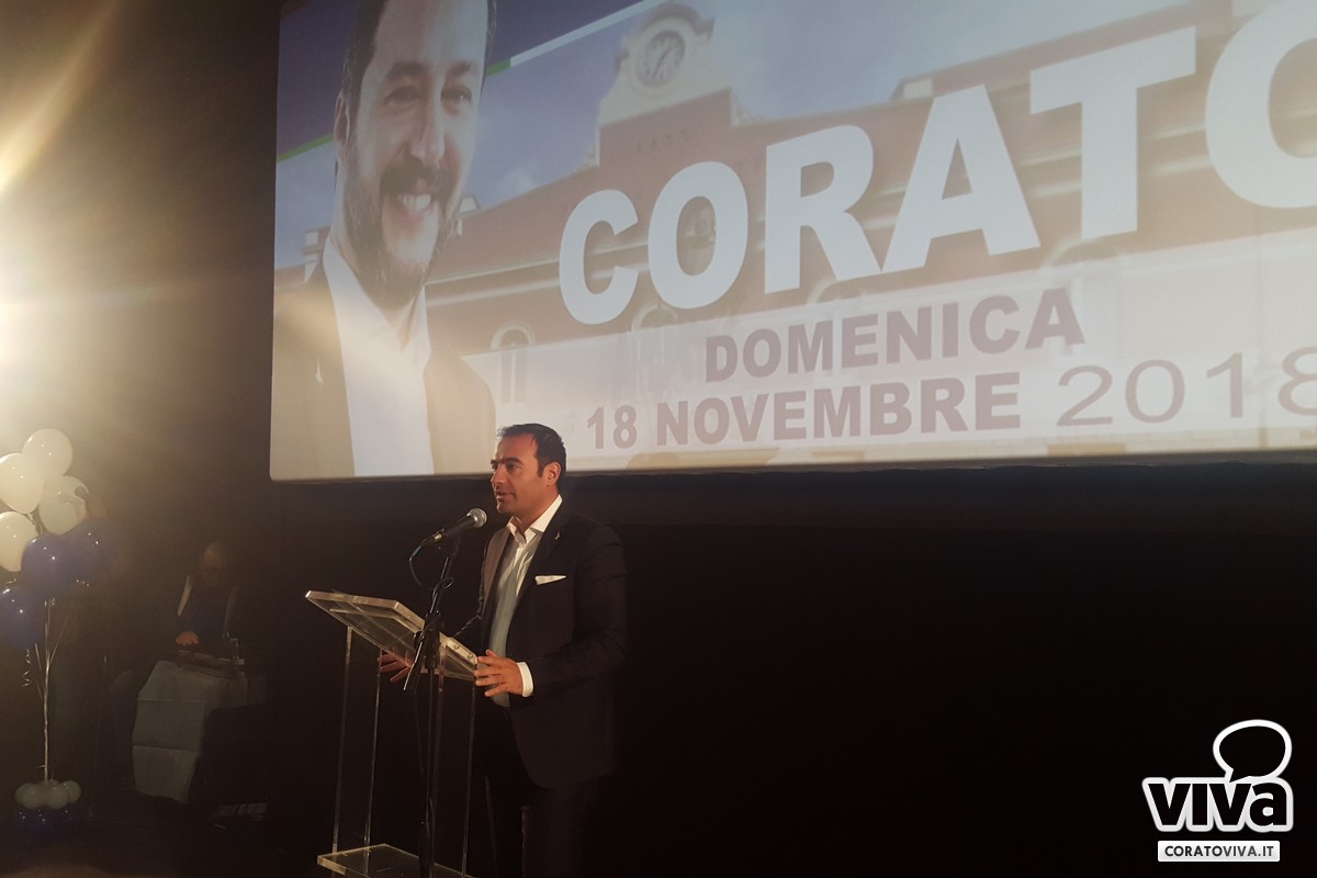 «La Lega è il primo partito in Italia. Adesso dobbiamo avere la capacità di mettere insieme la tendenza forte a livello nazionale con la costruzione di una lista fortissima qui a Corato, trovando le persone giuste, che siano anche nuove e che rappresentino quello che viene sentito come Lega nel paese. Siamo il partito che rappresenta la protesta e la programmazione: questa è la differenza vera tra noi e i Cinque Stelle. Corato ha avuto delle presenze illustri, come il Sen. Perrone che ha egemonizzato la vita politica nel paese, facendo del bene e facendo del male, anche se io penso che abbia fatto più del bene che del male. Ma dobbiamo riuscire a mettere insieme il passato con la novità: non voglio dire che Perrone sia il passato ma che c'è tutta un'altra città che sta guardando alle possibilità della Lega».