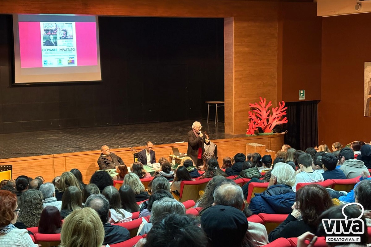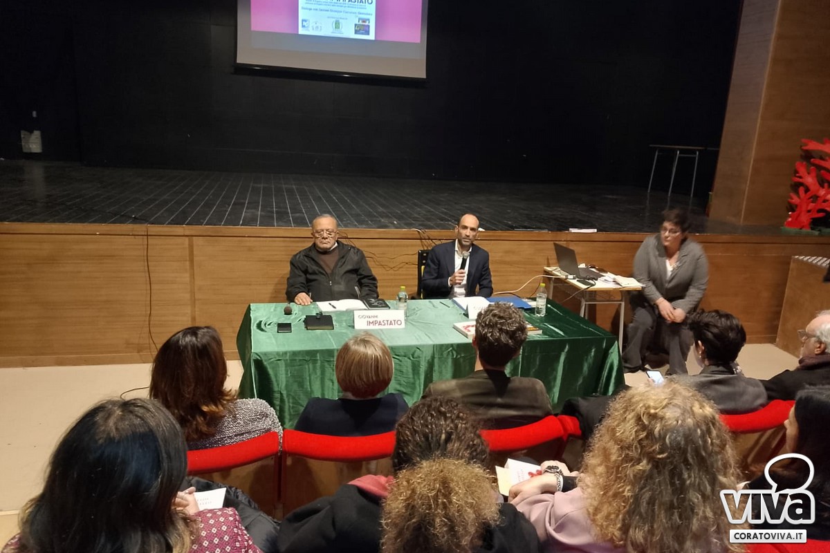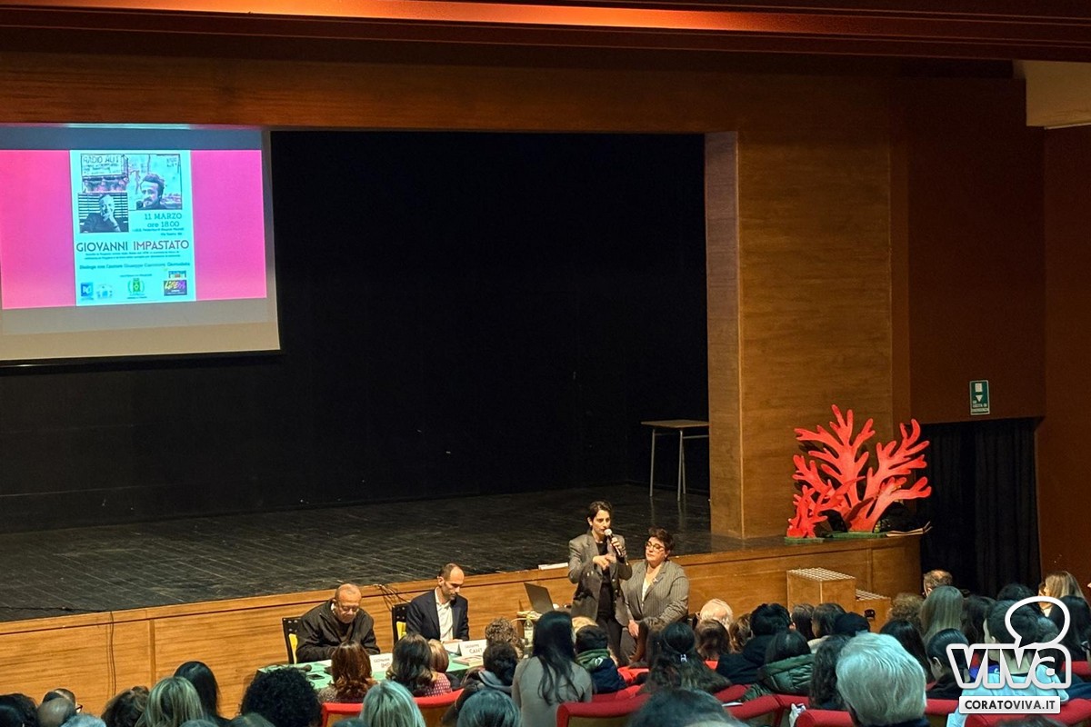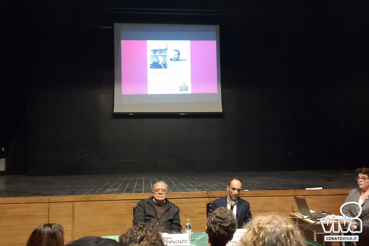 Organizzato dalla libreria "Olivieri - I piccoli Chi" con il patrocinio morale del Comune di Corato, nell'auditorium del liceo artistico "Federico II – Stupor Mundi", e moderato da Giuseppe Cantatore, l'incontro ha accolto i saluti del sindaco, dell'assessore Felice Addario, di Claudia Leo, referente locale dell'associazione "Libera contro le mafie - Sezione Vincenzo Grasso" e di Savino Lastella della sezione ANPI di Corato.