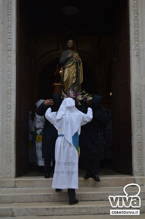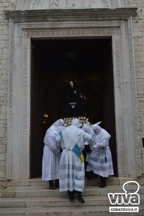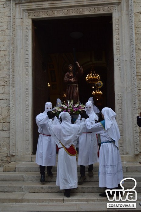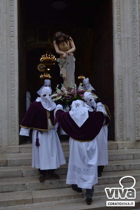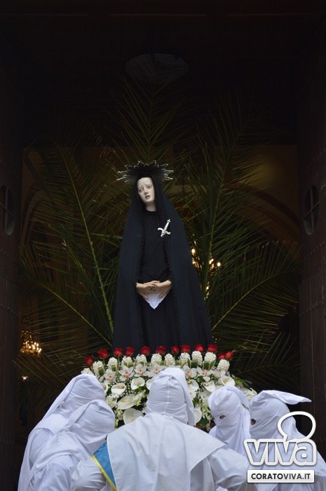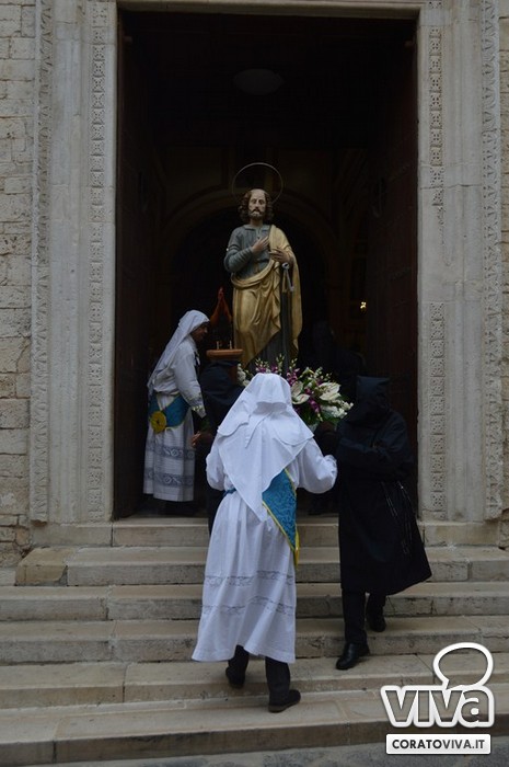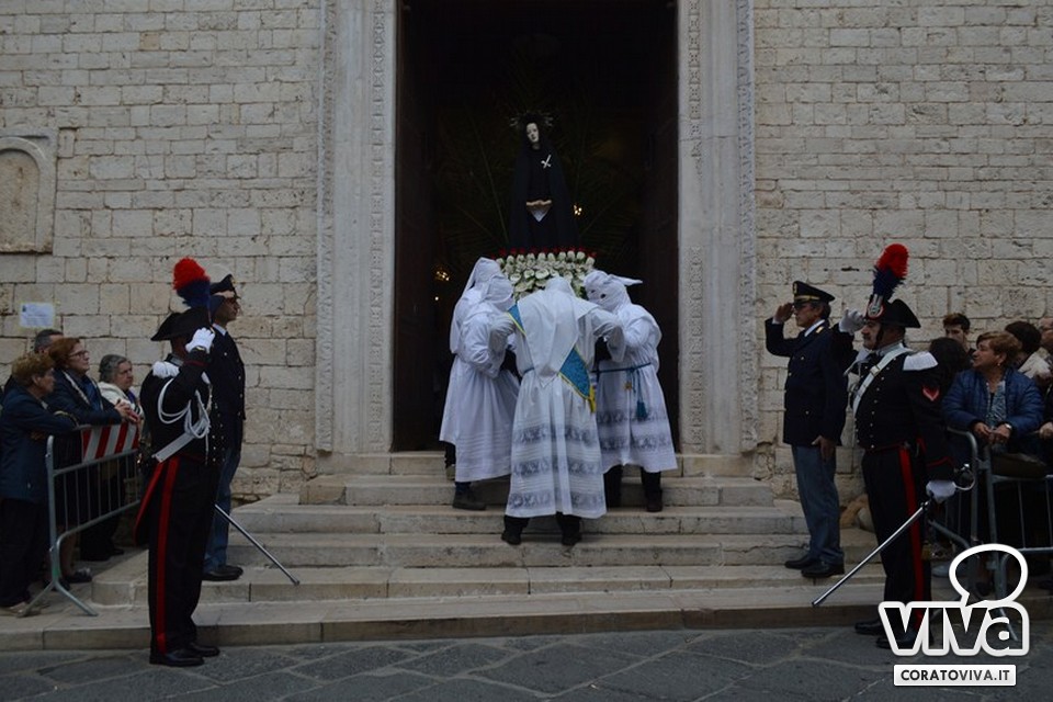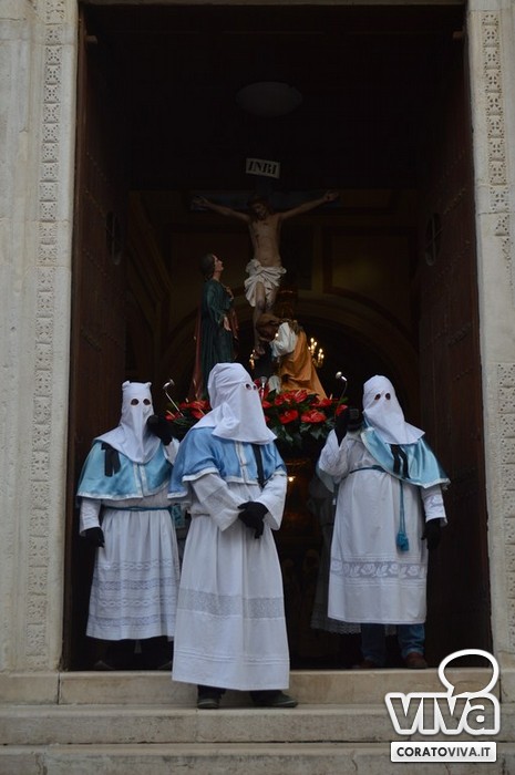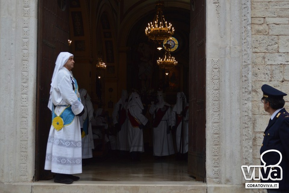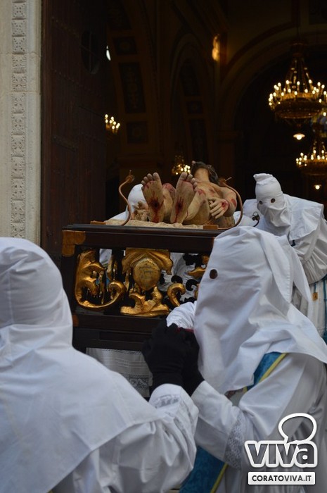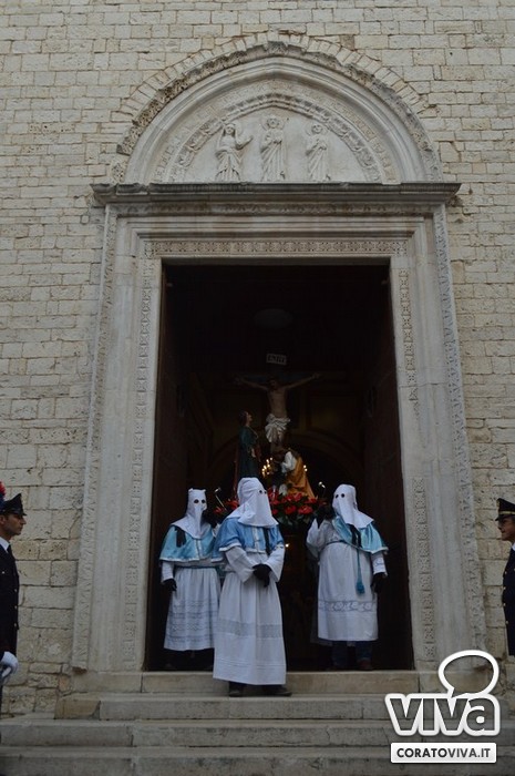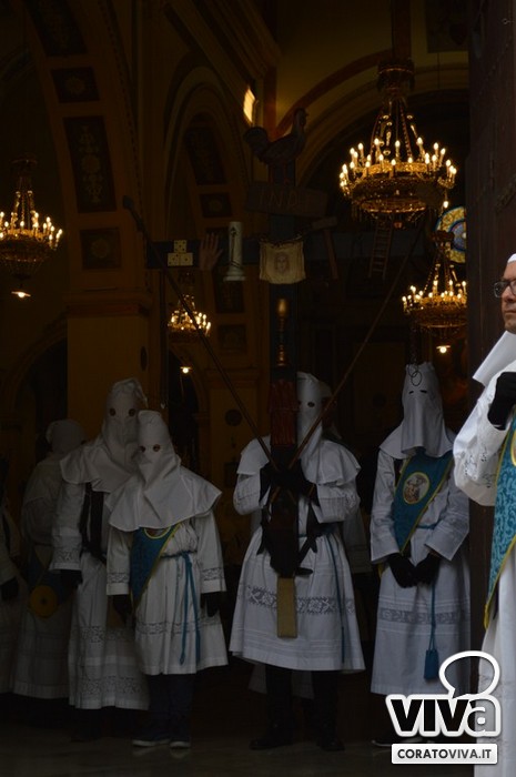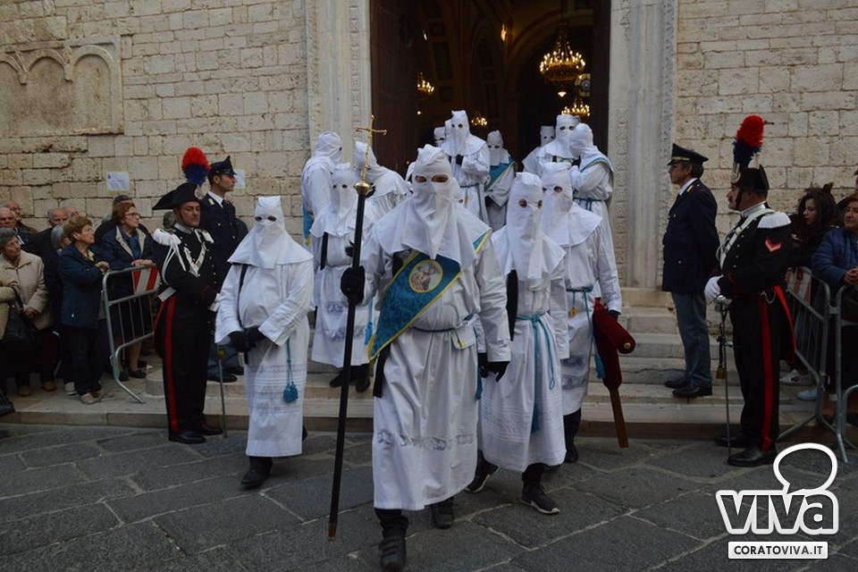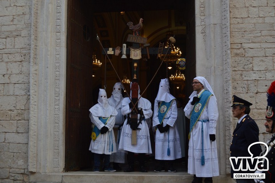 L'uscita dei Santi Misteri dalla Chiesa Matrice, edificio di culto in cui i simulacri sono temporaneamente custoditi, rappresenta uno dei momenti di più alta devozione di tutta la Settimana santa.