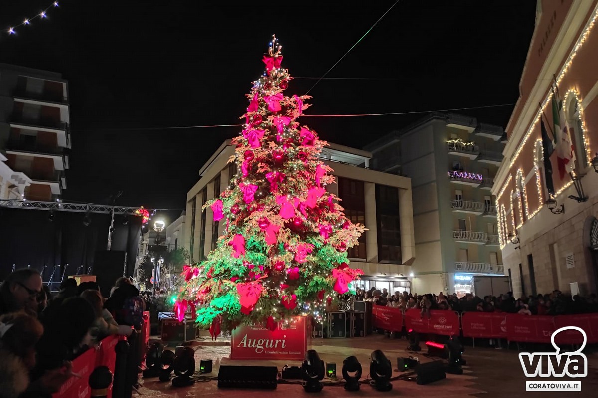 Piazza Matteotti è stata illuminata a festa in vista del Natale coratino: ieri 5 dicembre, l'accensione dell'albero ha richiamato una folla eterogenea e proveniente anche dai paesi limitrofi.