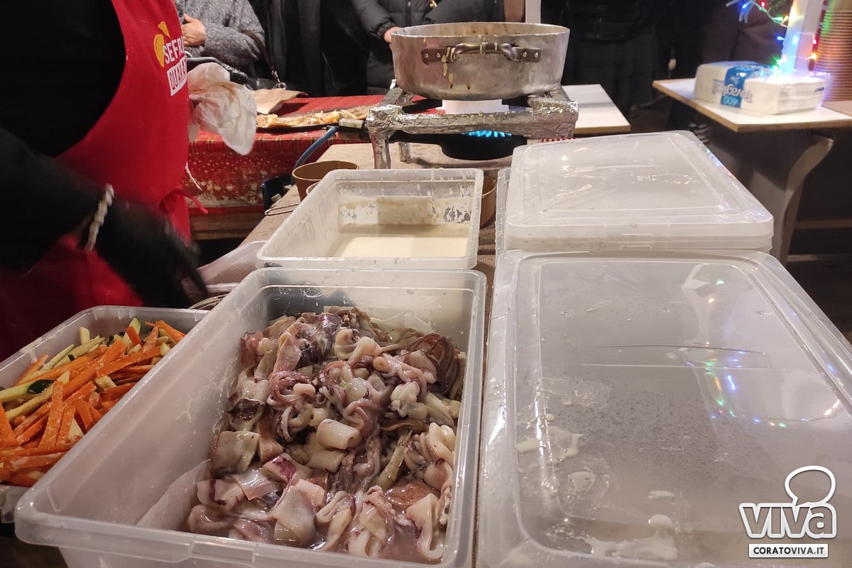 Specialità fritte o a base di olio degli esercenti locali hanno soddisfatto il palato dei presenti: pesce fritto, pettole, panzerotti e panettoni, sono state solo alcune delle specialità che hanno visto l'olio come protagonista indiscusso. Il giusto equilibrio tra gusto, tradizione e innovazione ha reso la serata un successo tale da accogliere visitatori anche dai paesi limitrofi.