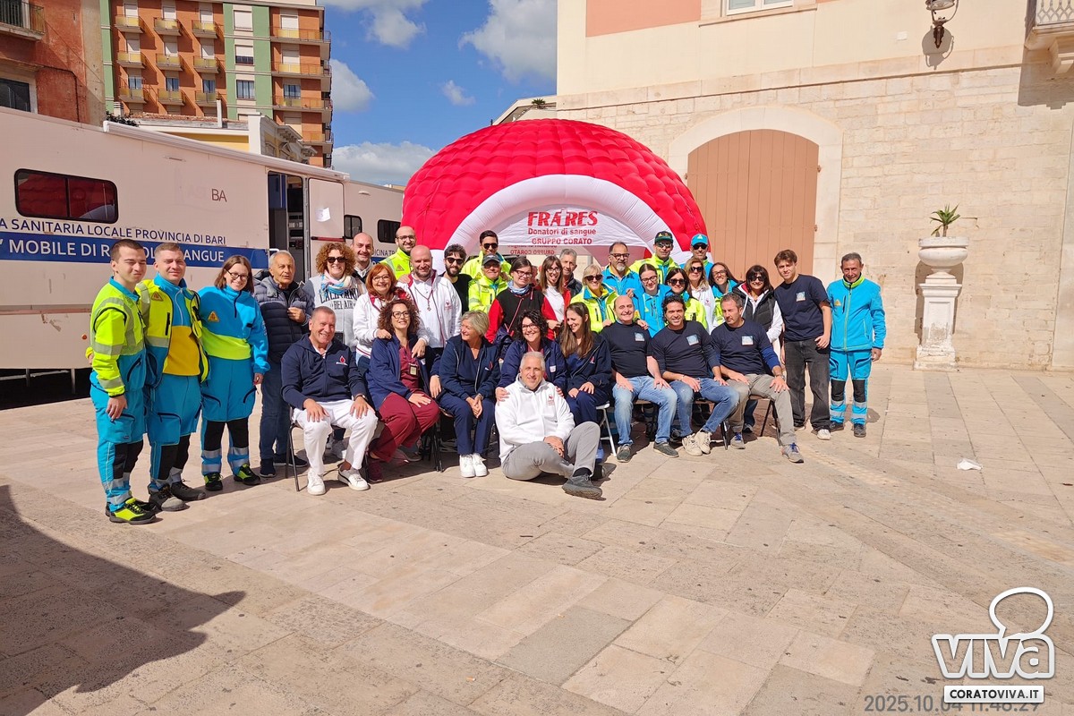 A rendere possibile l'iniziativa, infatti, la Confraternita Misericordia Corato, l'Associazione Fratres, l'Associazione Salute e Sicurezza e l'operato dei rispettivi responsabili: Luigi Berardi (Presidente "Misericordia Corato"), Franco Di Bisceglie (Presidente "Fratres"), Rosanna Cannillo (Vicepresidente "Misericordia Corato" e "Fratres"), Paolo Torelli (Amministratore "Fratres" e socio "Misericordia Corato"). Presenti anche tanti giovani del Servizio Civile.
