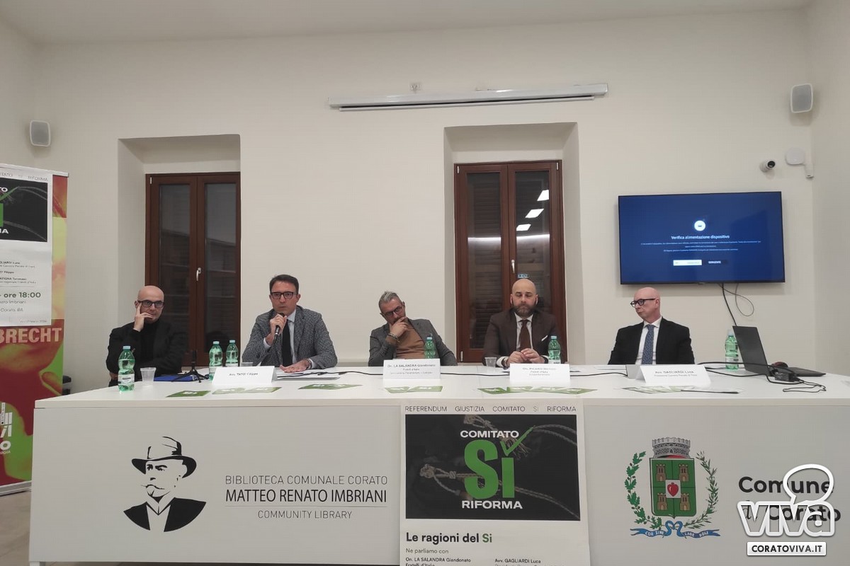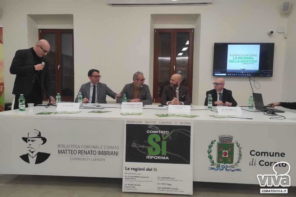 A meno di due mesi dal referendum giustizia 2026 che chiamerà gli italiani alle urne il 22 e il 23 marzo per decidere sulla separazione delle carriere, si è tenuto a Corato un incontro per discutere le ragioni del sì: ieri 6 febbraio, presso la Biblioteca Comunale, il comitato per il sì ha presentato le proprie argomentazioni di fronte a una sala gremita e curiosa.