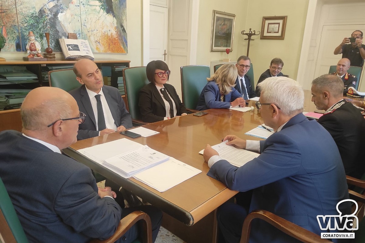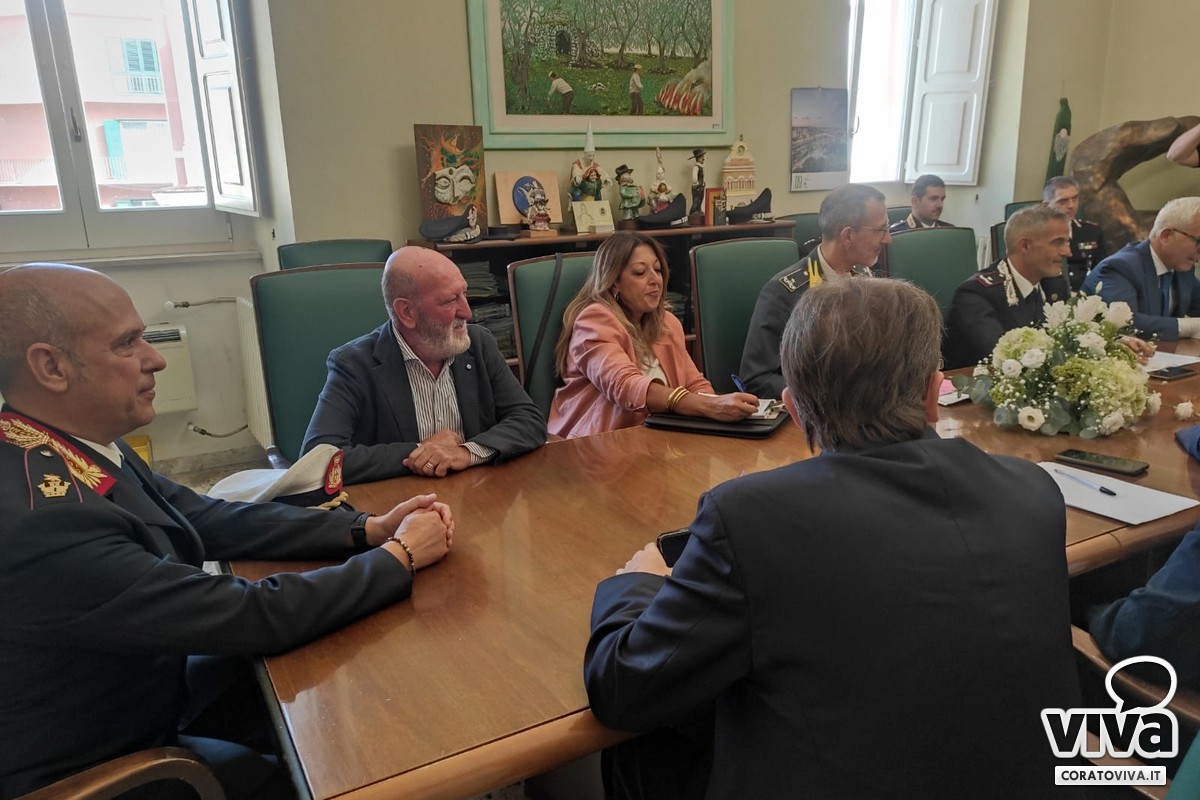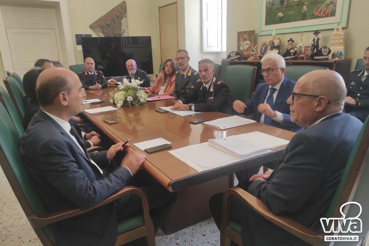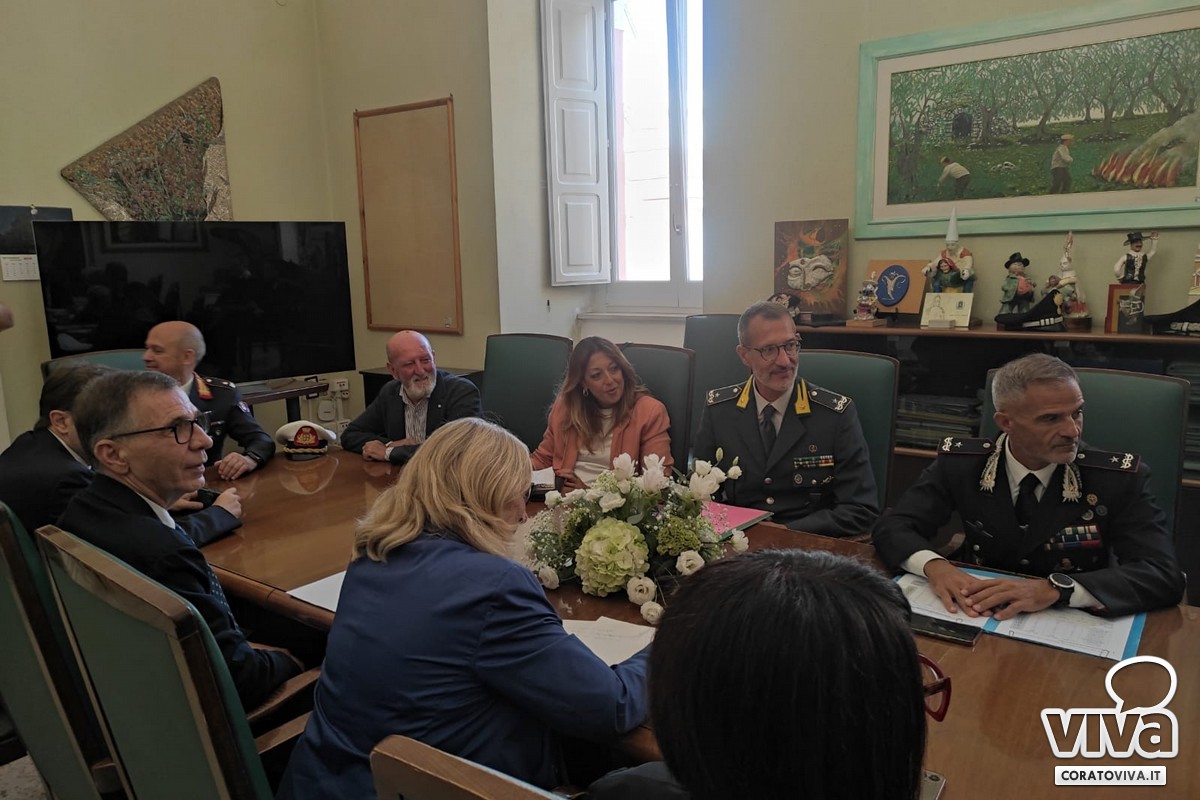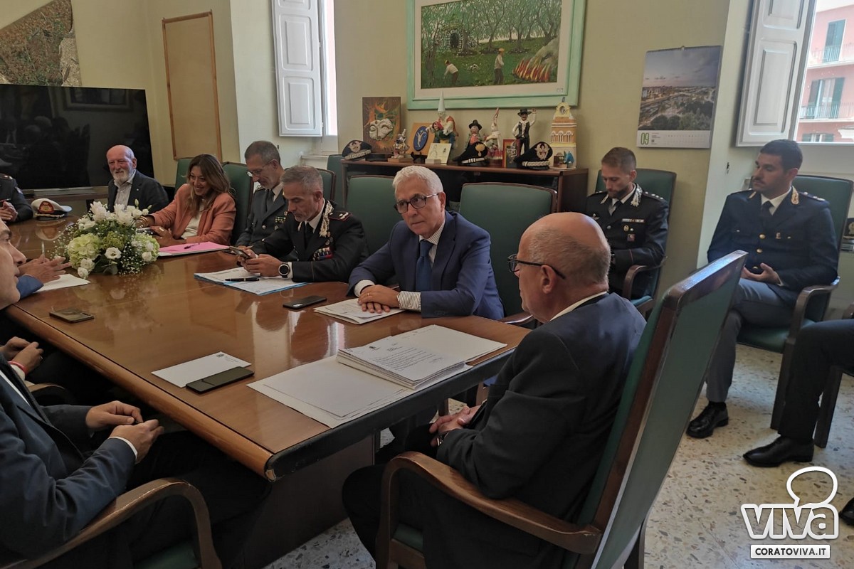 La città di Corato ha ospitato, questa mattina, il Comitato Provinciale Dell'Ordine e Sicurezza Pubblica, presieduto da Francesco Russo, Prefetto di Bari. Indetto a causa delle forti criticità riguardo l'ordine e la sicurezza pubblica in città, soprattutto in conseguenza dell'incendio di due autovetture dell'Ispettore Superiore Savino Lamarca della Polizia Postale, l'incontro evidenzia la collaborazione in atto tra Comune di Corato e Prefettura di Bari.