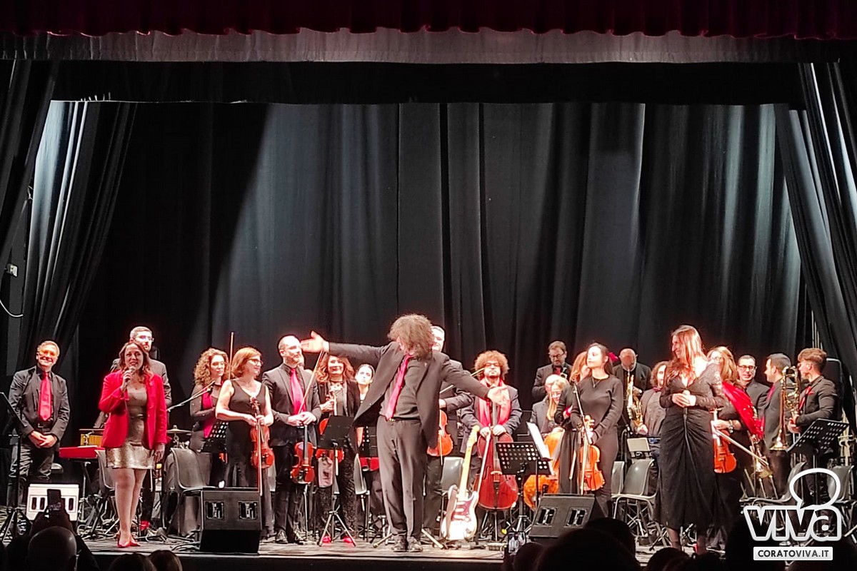 La giusta combinazione tra strumenti elettrici e tradizionali ha dato vita a un risultato molto ricco e colorato, grazie a un repertorio che ha compreso il cinema di Morricone, le melodie di Battisti e Mia Martini, il soul di Steve Wonder e i grandi classici del Natale che hanno contribuito a mantenere viva l'atmosfera magica delle feste.«Il progetto dell'orchestra città di Andria l'abbiamo sempre inteso come un contenitore aperto al territorio», ha dichiarato dal palco del Teatro la sindaca Giovanna Bruno. «C'è chi dice che dalla cultura non si ricava nulla, che la cultura è un investimento a perdere. Noi siamo sindaci che vogliamo perdere dietro la cultura. È l'investimento migliore e ve lo dice un sindaco di una comunità che non ha un centesimo sulla cultura. Noi abbiamo un limite di spesa di 13.950 € l'anno. Quindi trovare amministrazioni amiche come quella di Corato non è semplice».