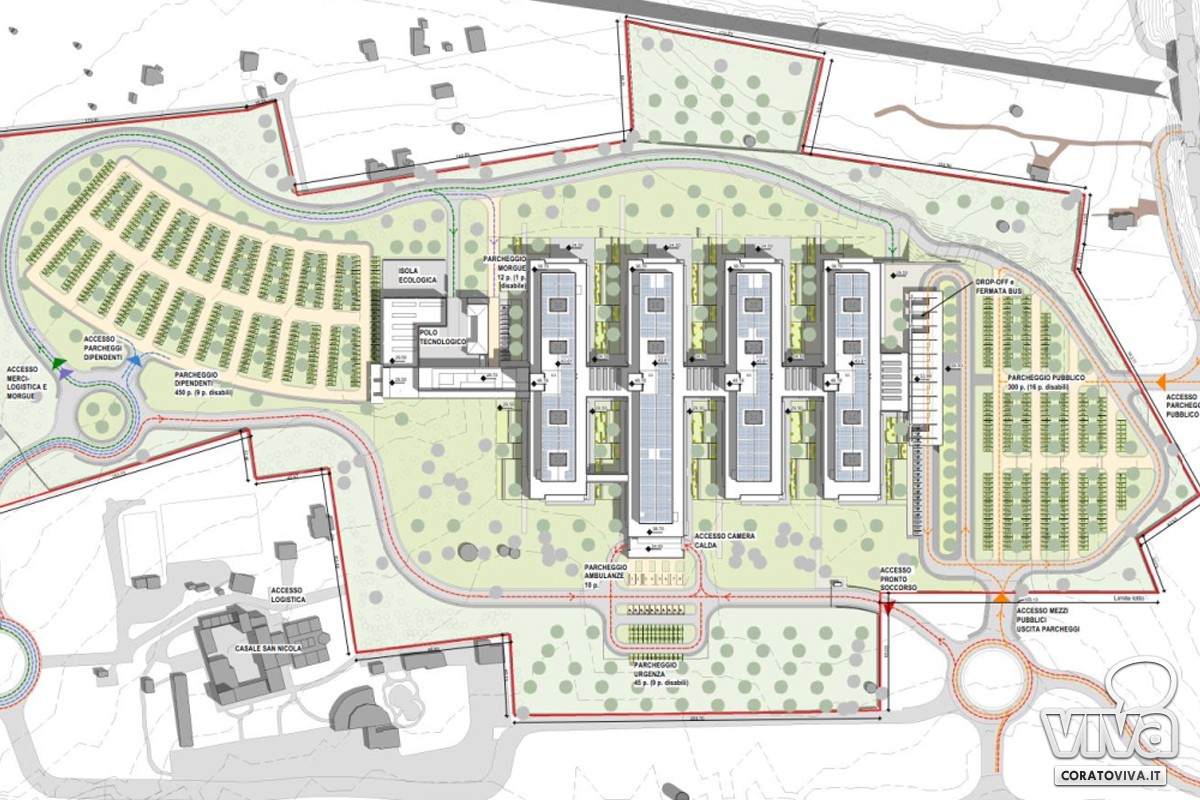 "L'area di 17 ettari utilizzata - ha spiegato l'ing. Francesco Ruggiero, in rappresentanza del Raggruppamento temporaneo composto da Manens, Studio Altieri, Pinearq, AGM Project Consulting - servirà un bacino di quasi 250mila abitanti con massima attenzione alle tematiche paesaggistiche ed ambientali. È un DEA di 1° livello da 243 posti letto, pensato attraverso uno studio clinico-gestionale ed un'analisi della rete erogativa. L'obiettivo era l'inserimento del nuovo ospedale nell'attuale offerta sanitaria del territorio servito. Non, quindi, una somma algebrica ma una dotazione di spazi necessari per svolgere al meglio tutte le attività che un moderno ospedale debba oggi offrire. Valore aggiunto è l'ospedale nell'ospedale, cioè la presenza di un luogo che possa fungere per la cura di una eventuale nuova pandemia".